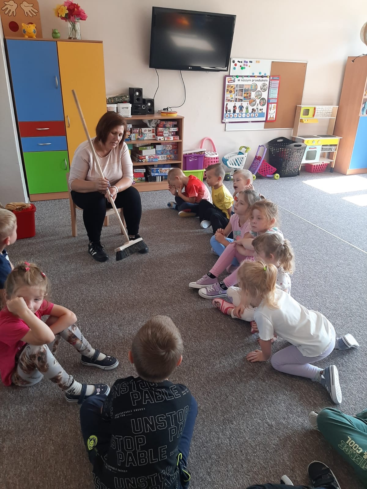 W dniu 9 września gościliśmy w naszym przedszkolu Panią Sprzątaczkę. Podczas spotkania dzieci miały okazję bliżej poznać zawód sprzątaczki - dowiedziały się, na czym polega jej codzienna praca.Spotkanie było nie tylko ciekawą lekcją o zawodzie, ale również okazja do kształtowania szacunku do pracy innych ludzi.