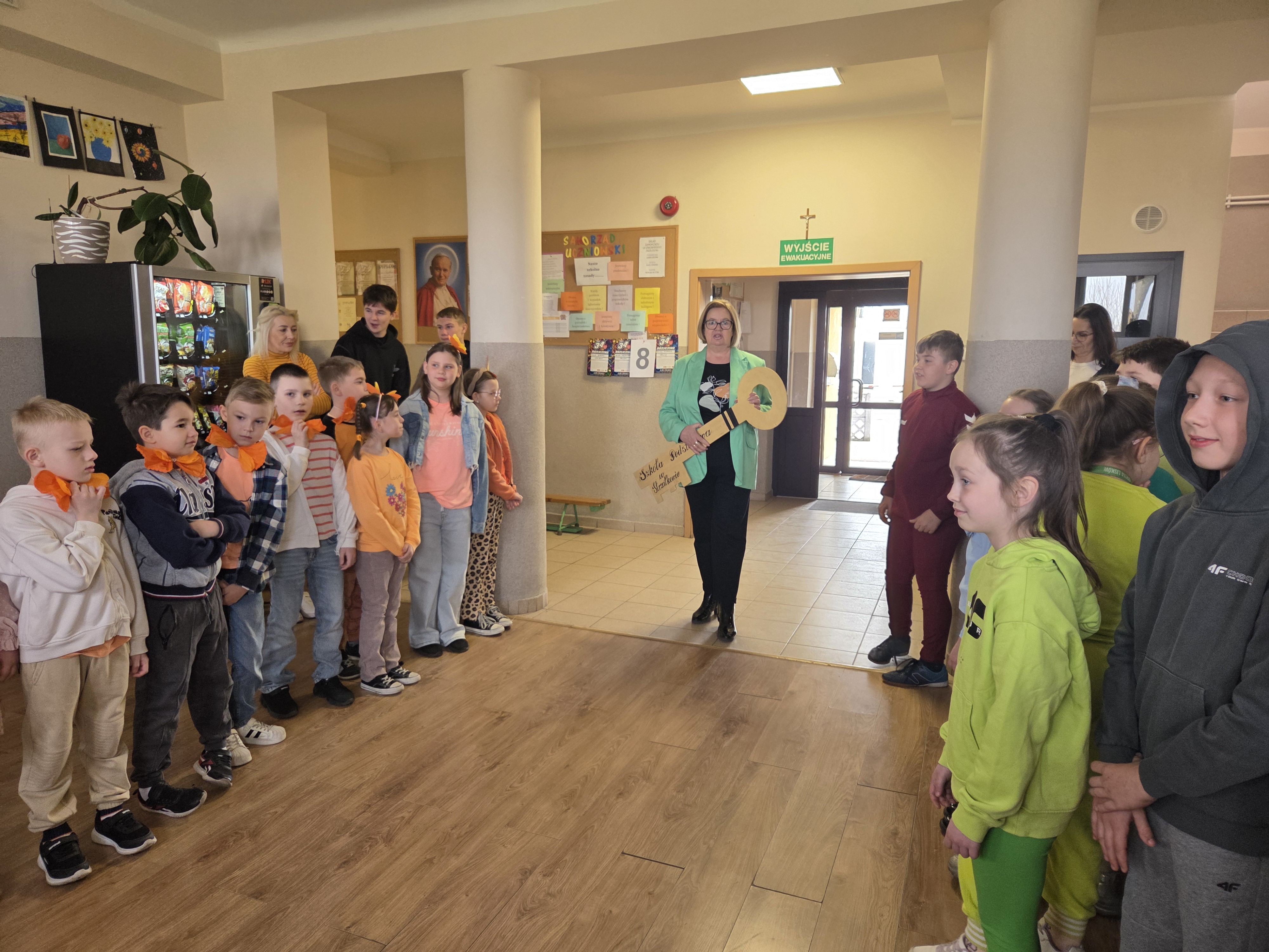 20 marca w piątek uroczyście obchodziliśmy Święto Wiosny oraz Dzień Samorządności w naszej szkole. Nad całością tego wydarzenia czuwał Samorząd Szkolny z panią Anną Mąkowską. Już od samego rana pani dyrektor podczas apelu przekazała symboliczny klucz do szkoły ,,nowej pani dyrektor” Sandrze Kurzawie z klasy VII. W tym uroczystym dniu uczennice i uczniowie z klasy VI, VII i VIII zamienili się rolami z nauczycielami i pracownikami naszej szkoły. ,,Nowi nauczyciele” z właściwym sobie zaangażowaniem wzięli się do pracy.