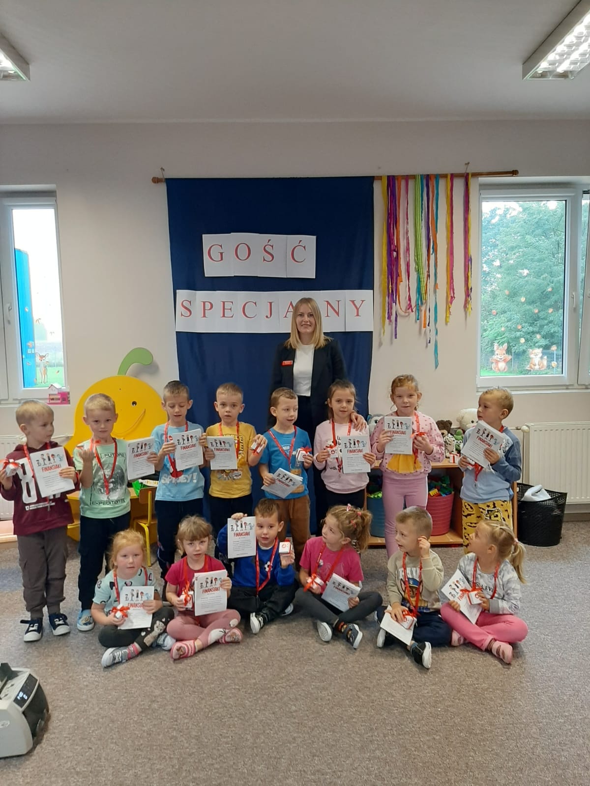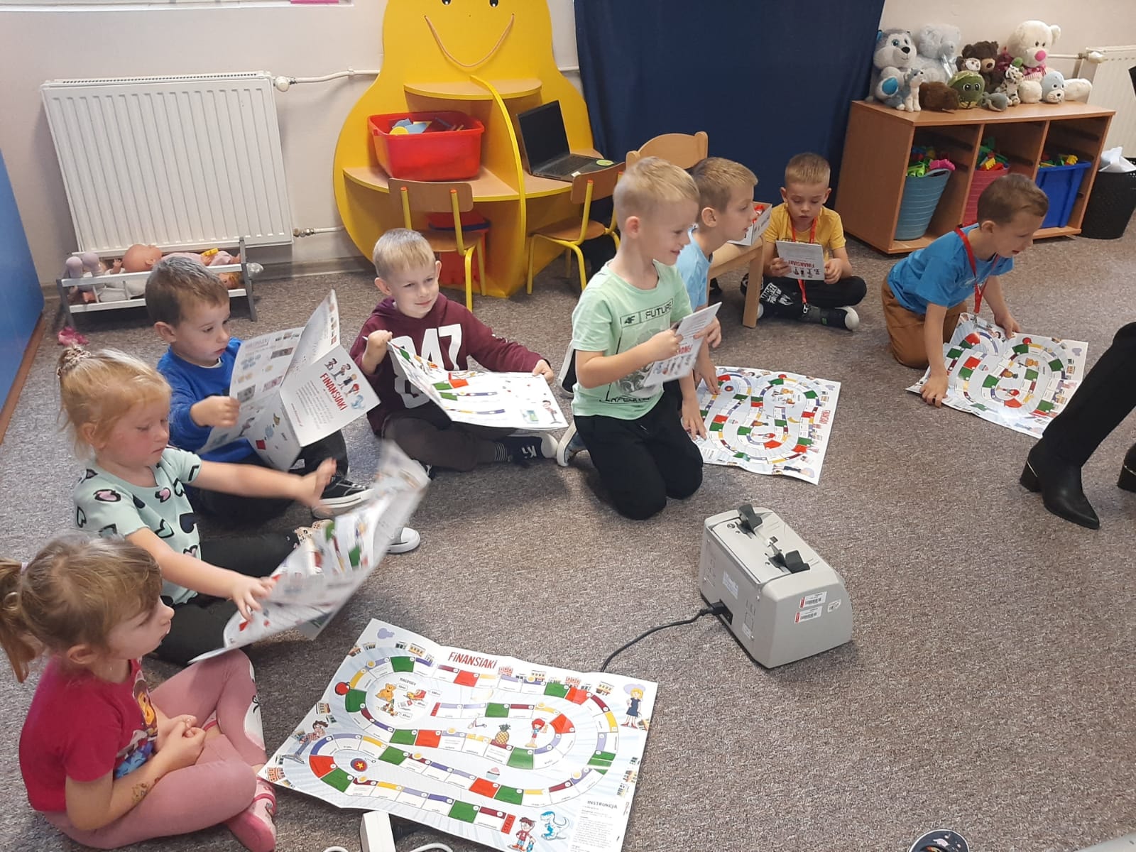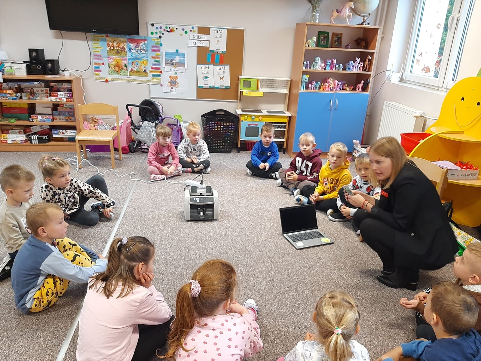 8 października naszych przedszkolaków odwiedził wyjątkowy gość – pracownik banku Santander. Dzieci miały okazję dowiedzieć się ciekawych rzeczy o pieniądzach i pracy w banku. Na zakończenie spotkania każde dziecko otrzymało drobny upominek. Serdecznie dziękujemy za wizytę i miłe prezenty!