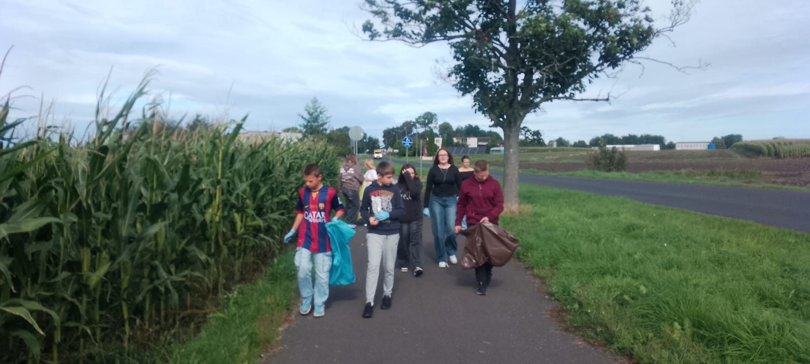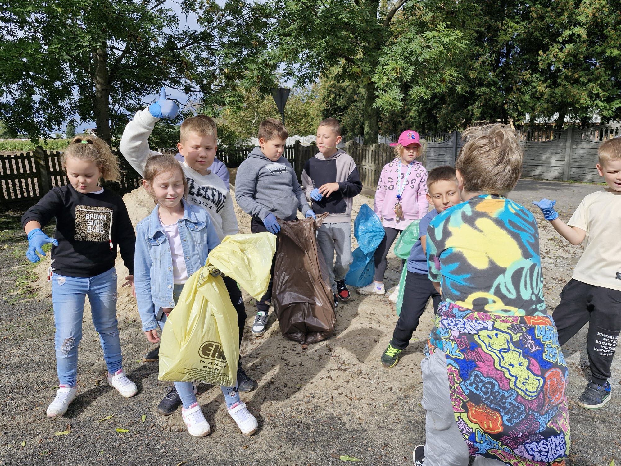 Dnia 15 września uczniowie naszej szkoły wzięli udział w akcji „Sprzątanie Świata – Polska 2025”, która odbyła się pod hasłem: „W naturę z kulturą”. W sprzątaniu uczestniczyli wszyscy uczniowie naszej szkoły – od najmłodszych po najstarszych. Przed wyjściem Pani Dyrektor Anna Kruczkowska uświadamiała uczniów jak ważne są działania na rzecz ochrony środowiska. Zaopatrzeni w rękawice i worki, porządkowali teren wokół szkoły, pobliskie miejsca wymagające oczyszczenia. Ich zaangażowanie i chęć wspólnego działania zasługują na wielkie brawa! Dzięki wspólnemu wysiłkowi zebrano wiele worków odpadów, a uczniowie przekonali się, jak ważne jest dbanie o środowisko.