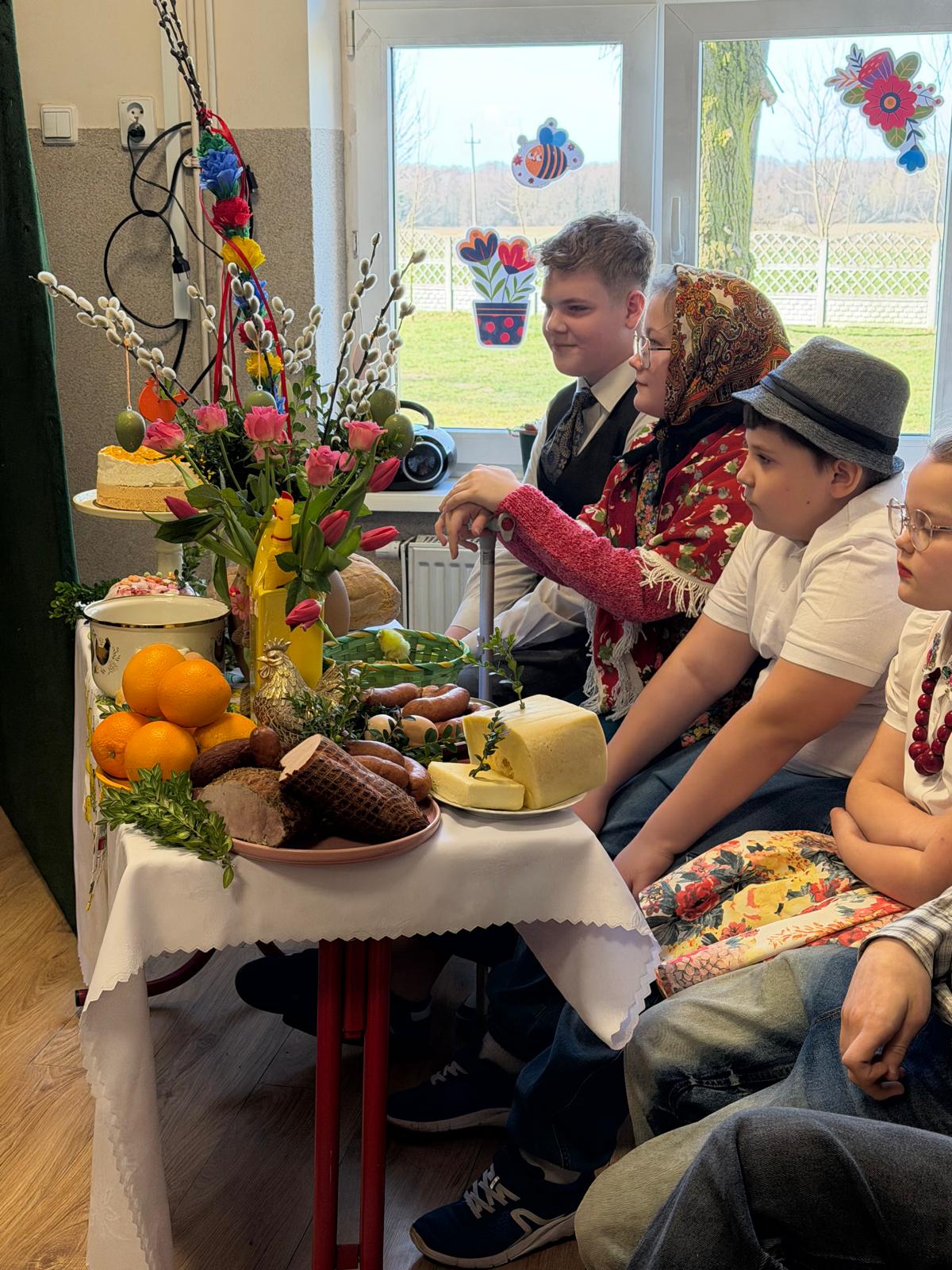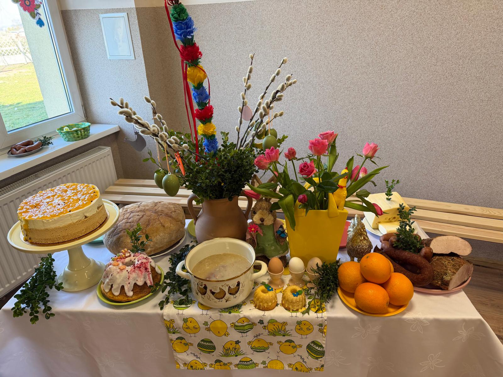 Tradycyjne potrawy wielkanocne różnią się w zależności od regionu, ale najczęściej na świątecznym stole pojawiają się jajka, żurek lub barszcz biały, biała kiełbasa, szynka, chrzan oraz słodka babka wielkanocna. Święta te są przede wszystkim czasem radości, spotkań rodzinnych oraz wspólnego świętowania, które łączy duchową głębię z bogatą tradycją i kulturą. Bardzo miło będzie jeśli przy wielkanocnym stole usiądzie wielopokoleniowa rodzina: babcia, dziadek, mama, tata, córeczki i synkowie. Będą dzielili się jajeczkiem spożywali świąteczne potrawy, takie, które mogliśmy zobaczyć na specjalnie przygotowanym na tę uroczystość stole. Wielkanoc to także moment refleksji nad sensem życia, nadzieją i odnową, co czyni te święta wyjątkowymi i uniwersalnymi, niezależnie od religijnych przekonań.