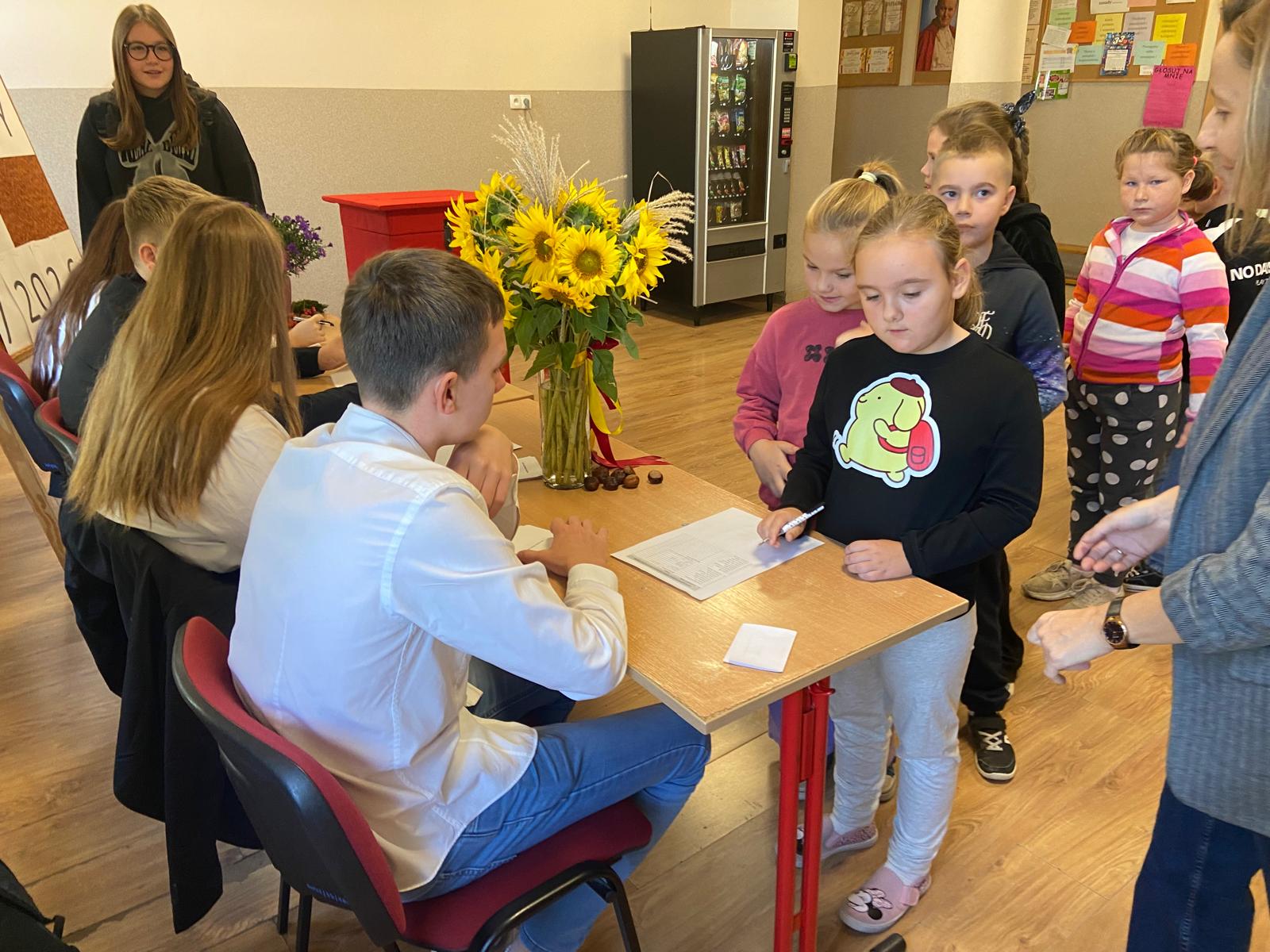W dniu 3 października b.r. w Szkole Podstawowej w Strzałkowie odbyły się demokratyczne wybory do Samorządu Uczniowskiego. Komisja wyborcza w składzie: Alan Gajdziński, Filip Lament, Zuzanna Pietrzak i Paulina Chojnowska wraz z p. Anną Mąkowską zadbała o to, by wybory przebiegały sprawnie i rzetelnie. Pani dyrektor, nauczyciele, uczniowie kl. I-VIII oraz pracownicy szkoły głosowali na troje kandydatów: Michalinę Wojtczak z kl. VI, Błażeja Szparagę z kl. VIII i Sandrę Kurzawę z klasy VII. Przewodniczącą szkoły została Sandra Kurzawa, zdobywając 33 głosy. Natomiast zastępcą przewodniczącej został Błażej Szparaga , zdobywając 28 głosów, a sekretarzem została Michalina Wojtczak, która otrzymała 11 głosów. Serdecznie gratulujemy Sandrze, Błażejowi i Michalinie. Życzymy im kreatywnej i efektywnej współpracy oraz godnego reprezentowania naszej szkoły.