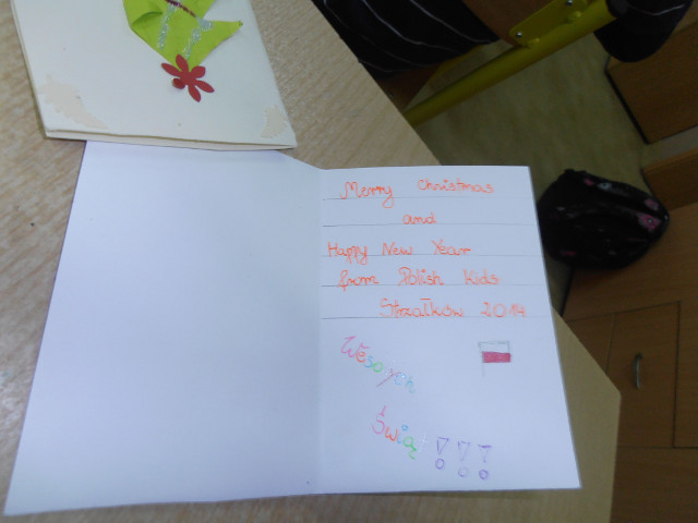 W projekcie wzięło udział 51 szkół, m.in. z Anglii, Szkocji, Francji, Rumunii, Włoch, Grecji, Turcji, Hiszpanii, Słowacji, Czech, Belgii, Ukrainy. Dzieci z kółka angielskiego wspaniale wykonały zadanie, począwszy od tworzenia kartek świątecznych (51 sztuk!), po życzenia w języku angielskim czy adresowanie kopert (co nie zawsze okazywało się bardzo proste- np. okazało się, że grecki alfabet różni się „nieco” od naszego). Przed świętami Bożego Narodzenia otrzymaliśmy ok. 50 kartek świątecznych z różnych zakątków Europy i nie tylko. Otwieranie kopert było niezwykle emocjonujące dla wszystkich, dowiedzieliśmy się wielu ciekawych rzeczy o świętowaniu Bożego Narodzenia w różnych krajach. Poza tym na platformie e-Twinning uczniowie mogli oglądać zdjęcia innych dzieci i ich szkół, a nauczyciele dzielić się informacjami i wrażeniami. Jesteśmy zachwyceni i już myślimy o następnym projekcie!