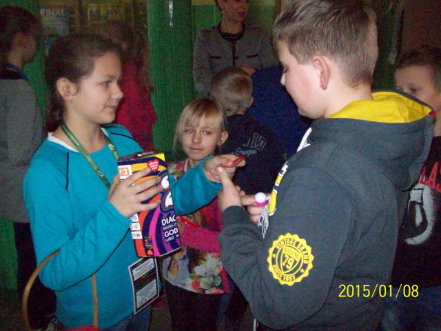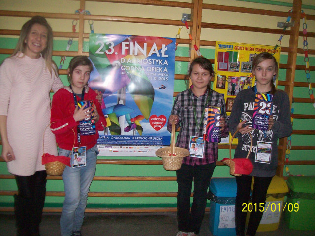 Oj, działo się, działo! Wystartowaliśmy punktualnie o godz. 8:00. Kolorowe puszki WOŚP szybko się zapełniały. Każdy darczyńca otrzymał charakterystyczne czerwone serduszko i przyklejał je do ubrania. Było wesoło, miło i życzliwie. Wiedzieliśmy, że cel jest szczytny. Wspierając Wielką Orkiestrę Świątecznej Pomocy przyczyniamy się do tego by grała nam ona „ do końca świata i jeden dzień dłużej” a rozgłos, jaki zawszetowarzyszy Finałowi, jest okazją, by odkrywać i propagować wśród uczniów chęć bezinteresownego czynienia dobra, kształtować wrażliwość i uczciwość, uświadamiać i pokazywać, że wspólnie działając można dobrze się bawić i przy okazji pomagać. W tym roku główny finał WOŚP odbył się w Zespole Szkół Nr 1 w Liskowie. W programie artystycznym, który uatrakcyjniał całą imprezę zaprezentowały się dzieci i młodzież ze szkół z gminy Lisków wykonując kilka piosenek. Uczennica naszej szkoły Alicja Mąkowska zaśpiewała piosenkę Seweryna Krajewskiego „Jest taki dzień”. Podziwialiśmy także występ formacji tanecznej „Promyczki” z Gminnego Ośrodka Kultury Sportu i Rekreacji w Liskowie. Jak widać „serca” mamy coraz większe, bo kwoty zbierane w kolejnych finałach są coraz wyższe. Wielkie podziękowania należą się wszystkim uczniom, pani dyrektor, nauczycielom i wszystkim tym, którzy zaangażowali się w organizację 23 Finału WOŚP w Szkole Podstawowej w Strzałkowie a przede wszystkim wolontariuszom: Wiktorii Jażąb, Patrycji Szprync i Honoracie Kujawińskiej.