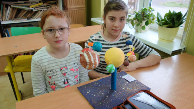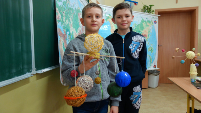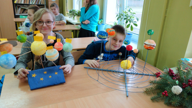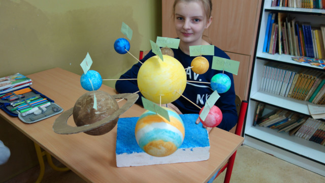 Uczniowie klasy VI wykonali modele Układu Słonecznego. Miały one na celu utrwalenie wiadomości zdobytych na lekcjach przyrody, ale także zapoznanie młodszych kolegów i koleżanki z planetami naszego Układu Słonecznego.