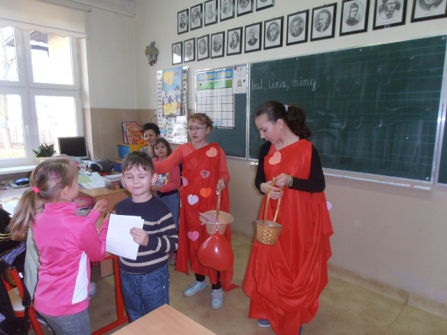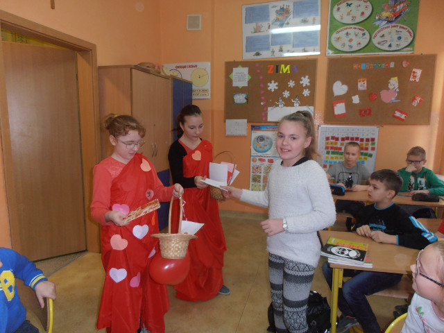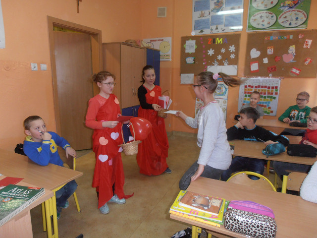 W naszej szkole już 12 lutego obchodziliśmy Walentynki. Nasze dwa amorki: Daria i Weronika z kl. VI z wielkim zaangażowaniem doręczały listy i liściki, wywołujące uśmiechy i rumieńce na twarzach adresatów. Anonimowe lub nie, śmieszne lub poważne, ręcznie robione czy drukowane - wszystkie Walentynki sprawiły wiele radości.