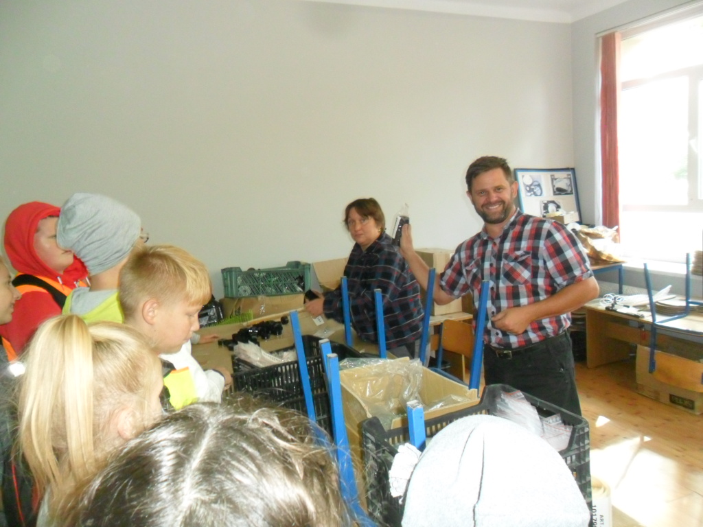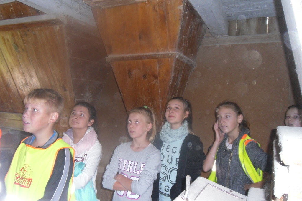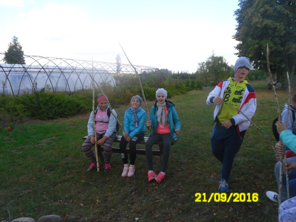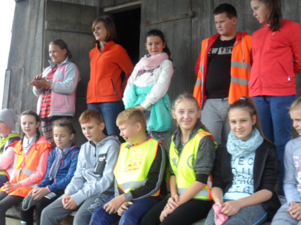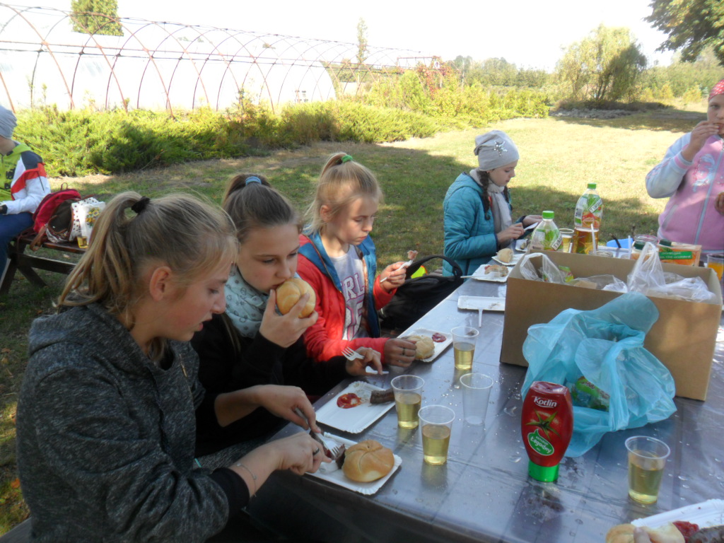 Pierwszy przystanek odbył się w Małgowie przy młynie. To jeden z nielicznych, które zostały jeszcze w naszej gminie. „Wiatrak/młyn w Małgowie. Pierwszym właścicielem wiatraka był Michał Surma, który przekazał go swojemu zięciowi Andrzejowi Lisieckiemu, a ten z kolei swojemu synowi Juliuszowi. Wiatrak został zakupiony w mieście Dobra (pow. turecki), rozebrany i przywieziony do Małgowa w częściach. Był typowym „koźlakiem”, wykonującym usługi młynarskie. W 1967 roku wiatrak został przerobiony na młyn elektryczny. Budynek wykonany jest z drewna częściowo obitego papą, posiada też dobudówkę, w której zainstalowano śrutownik zboża. Młyn jest dobrze usytuowany, przy trasie Lisków-Turek, skąd doskonałe drogi dojazdowe mają okoliczni rolnicy ze wsi: Lisków, Strzałków, Będziechów i Tokary. W latach 1999-2001 wiatrak był zamknięty z powodu braku wykwalifikowanych młynarzy oraz zbyt wygórowanych wymogów unijnych związanych z przepisami podatkowo-sanitarnymi.” (artykuł, Liskowianin 2007 nr 1-4 -Wiatraki i młyny w gminie Lisków, Stefan Ferenc). Zapoznaliśmy się z historią młyna w Małgowie i nie tylko. Dowiedzieliśmy się także, że w gminie było kilkanaście wiatraków, m.in. w Strzałkowie, Strzałkowie-Borki, Nadzieży, Józefowie, Lubieniu, Swobodzie, Józefowie, Zakrzynie, Liskowie, Pyczku, Rzgowie, Żychowie, Młyniskach, Ciepielewie. Niestety większość nie przetrwała do naszych czasów. Szkoda, bo na naszej trasie znalazłoby się jeszcze kilka wiatraków. Pokonując kolejny etap naszej wycieczki dotarliśmy do starej żwirowni p. Kujawińskiego i p. Rabiegi. Dalsza część trasy prowadziła przez lasy Małgowa, dotarliśmy do granic naszej gminy, powiatu i województwa. Jadąc do ZAZ-u w Swobodzie minęliśmy dużą żwirownie p. Dancewicza. W dawnej szkole w Swobodzie znajduje się Zakład Aktywności Zawodowej, który powstał w 2004 roku i był pierwszym ZAZ w Wielkopolsce. Tam przywitał nas p. Karol Matczak, który przedstawił czym zajmują się podopieczni ZAZ. Niedaleko ZAZ znajduje się najwyższe wzniesienie gminy „Hałamówka” , które jest pozostałością polodowcową, tzw. moreną czołową. Po „zdobyciu„ szczytuJ upiekliśmy kiełbaski na ognisku. Były pyszne! z bułeczką i kiszonym ogóreczkiem od mamy Alicji. Po odpoczynku i zjedzonym posiłku wróciliśmy do szkoły. Dziękujemy p. Karolowi i pracownikom ZAZ za przygotowanie ogniska i tak miłe przyjęcieJ. Bardzo się nam podobało i mamy nadzieję, że Was jeszcze kiedyś odwiedzimy.