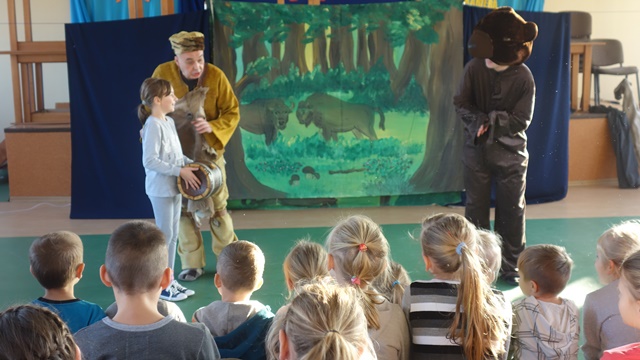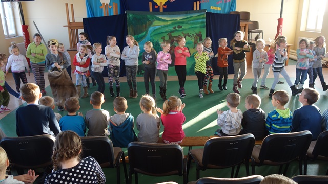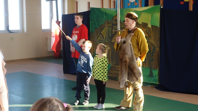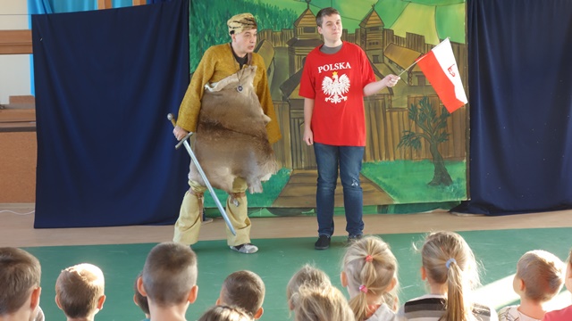 Listopad to miesiąc, w którym szczególnie chcemy przybliżyć naszym uczniom takie wartości jak patriotyzm i szacunek dla Ojczyzny. Ponieważ jednym ze sposobów rozwijania patriotyzmu jest stwarzanie okazji do poznawania historii Polski, zaprosiliśmy artystów krakowskiego Studia Małych Form Teatralnych Krak-Art. ze spektaklem „Lech, Czech i Rus”. Przedstawienie oparte na znanej legendzie o powstaniu państwa polskiego to opowieść o Lechu, który za namową ducha puszczy - Żubra, zostaje na wskazanej przez niego ziemi, zakłada państwo polskie i buduje jego stolicę - gród Gniezno. Była to świetna lekcja patriotyzmu, uwrażliwiająca na takie symbole polskości jak flaga narodowa, godło i hymn państwowy.