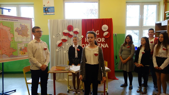 11 listopada na pamiątkę odrodzenia się Polski w 1918 r. po 123 latach niewoli, obchodzimy Narodowe Święto Niepodległości. Zostało ono formalnie ustanowione w ostatnich latach II RP na mocy ustawy z 23 kwietnia 1937 r. jako Święto Niepodległości, zniesione 22 lipca 1945 r. przez władze komunistyczne, a następnie przywrócone w okresie transformacji ustrojowej ustawą z 15 lutego 1989 r. pod nazwą funkcjonującą obecnie. W naszej szkole co roku najstarsi uczniowie w czasie uroczystej akademii, przybliżają swoim młodszym kolegom tragiczne dla Polaków wydarzenia oraz walkę o odzyskanie tożsamości narodowej. Jest to dzień szczególny, przypomina nam, że wolność raz zdobyta i niepodległość raz osiągnięta nie jest czymś trwałym, tylko czymś danym, co trzeba pielęgnować.
