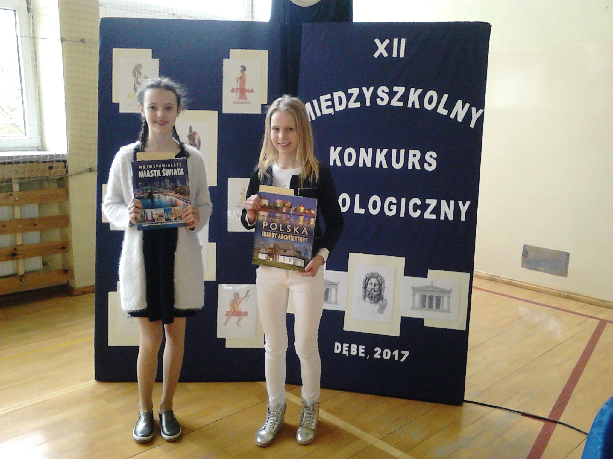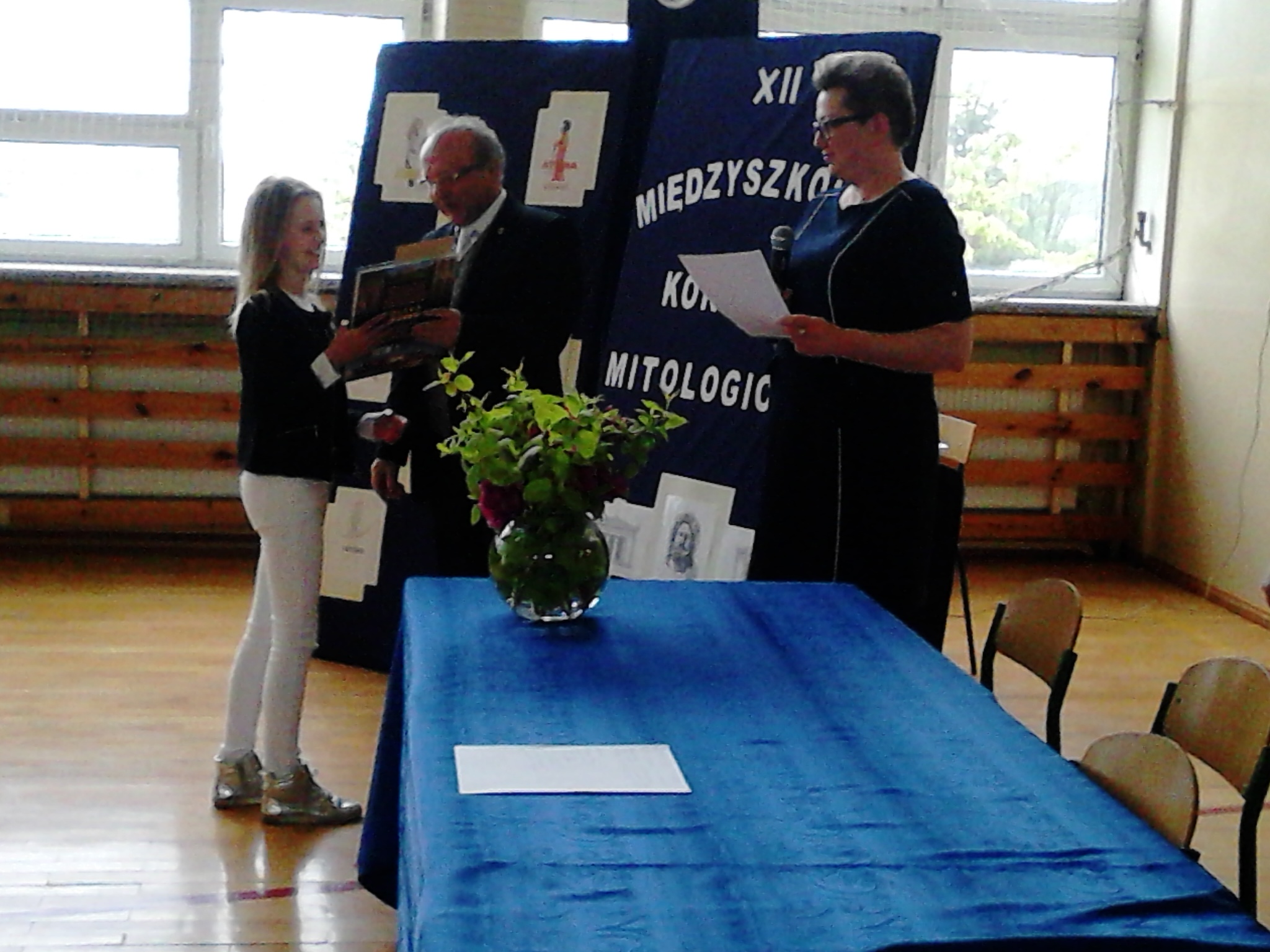 Po ogłoszeniu wyników okazało się, że Klaudia Wypych zdobyła I, a Alicja Mąkowska II miejsce. Cenne książkowe nagrody ufundowane przez organizatorów były dodatkową nagrodą za pracę włożoną w przygotowanie do konkursu i zajmą zaszczytne miejsce w domowych biblioteczkach naszych dziewcząt obok… „Mitologii” J.Parandowskiego.