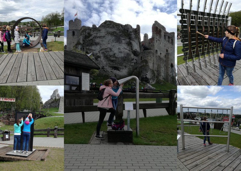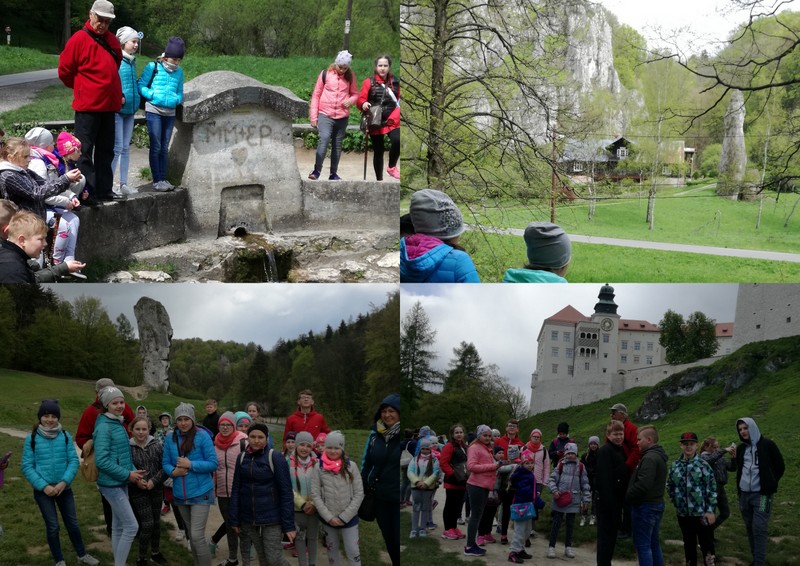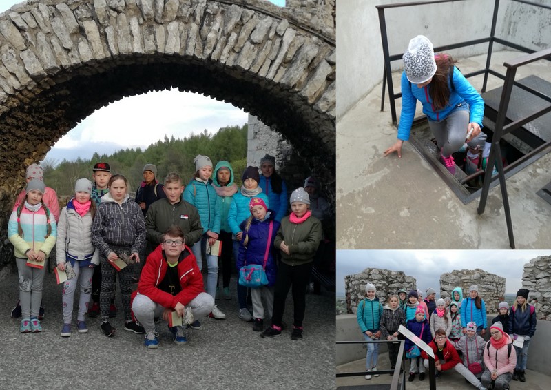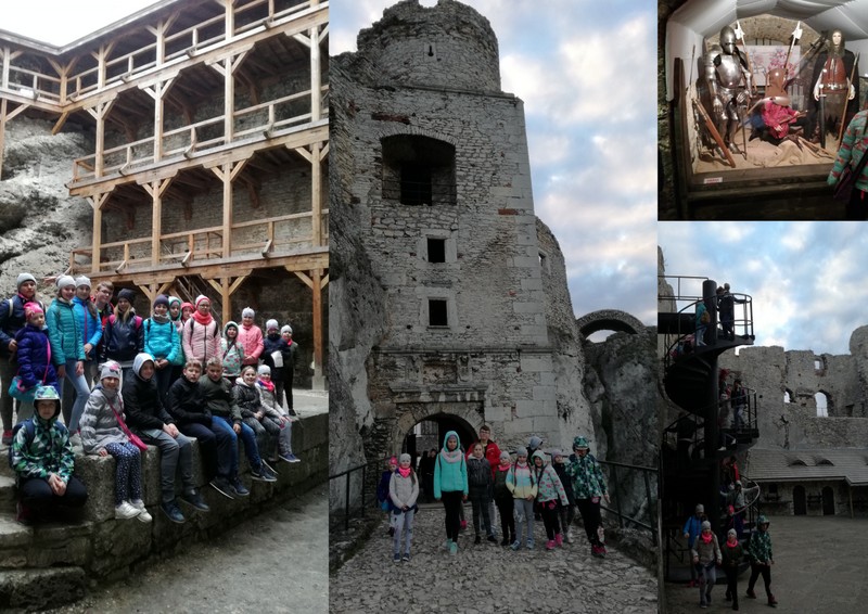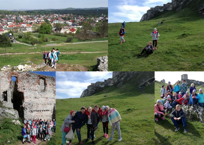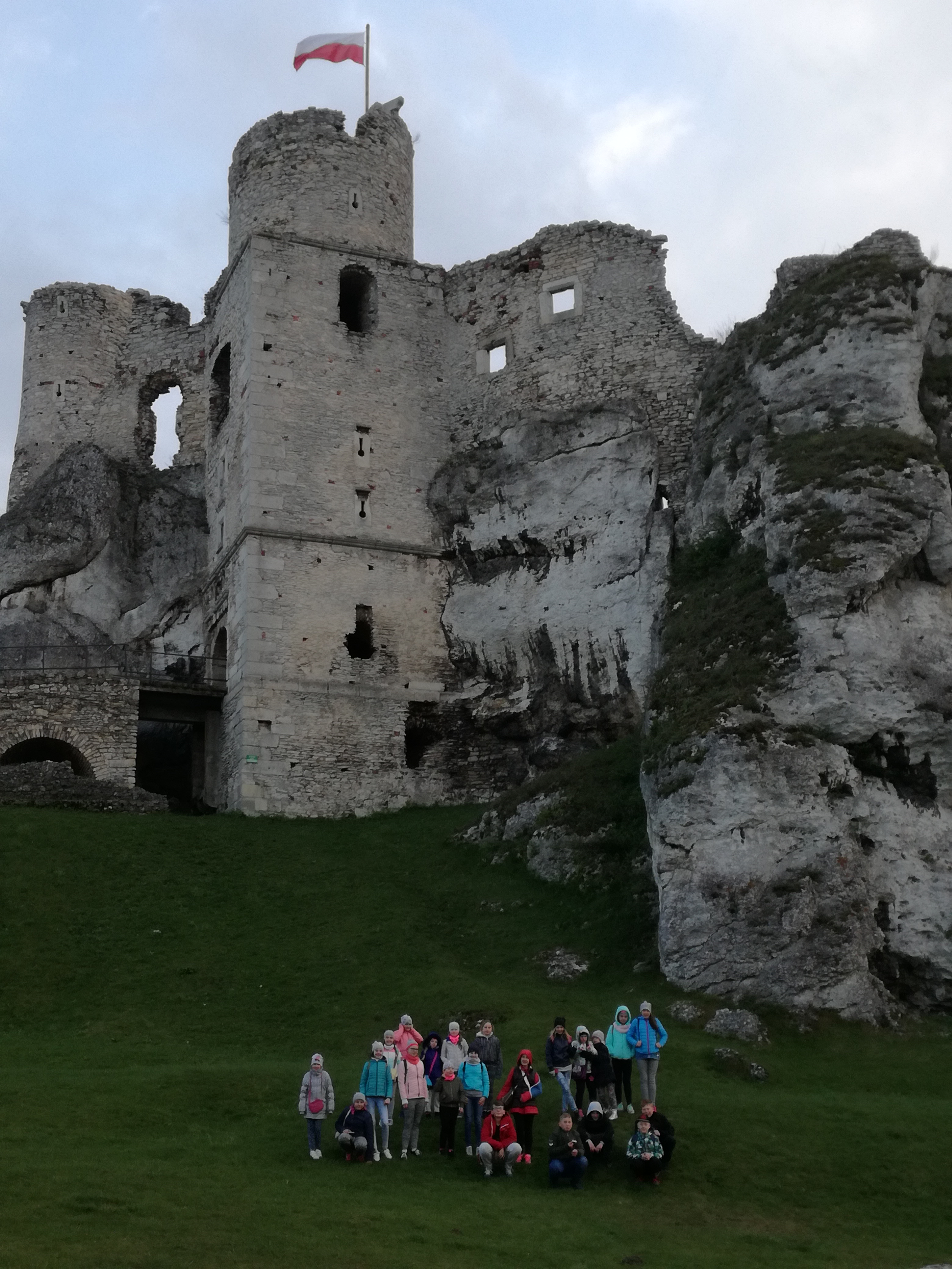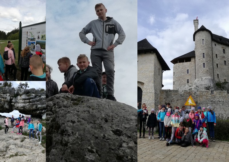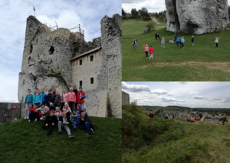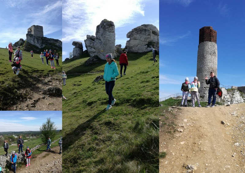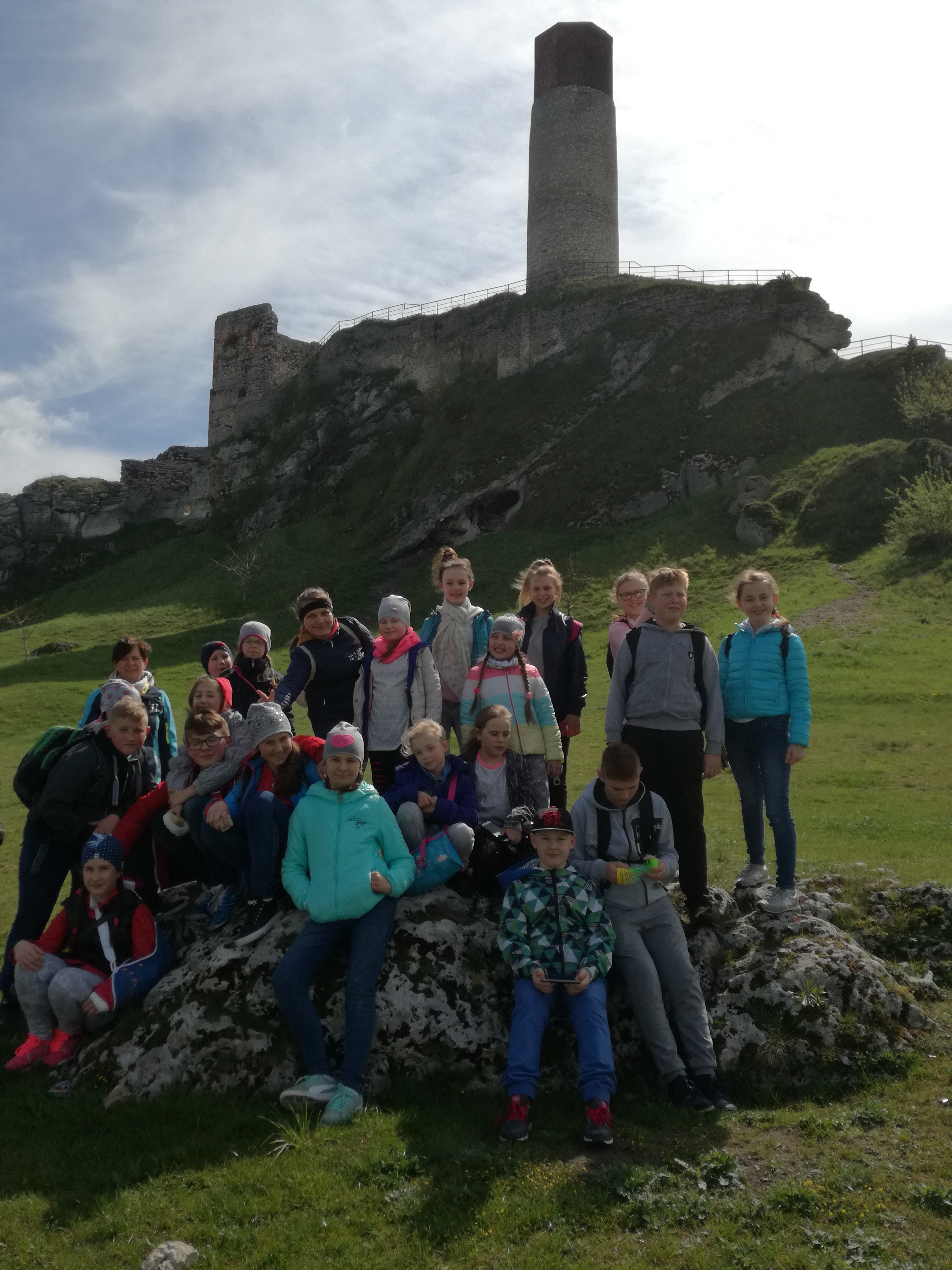 Teren leżący pomiędzy Krakowem i Częstochową, zwany Wyżyną Krakowsko-Częstochowską, to jedno z najpiękniejszych miejsc w Polsce. Kolebka naszej kultury. Większość z obiektów określanych mianem Orlich Gniazd powstała za panowania Kazimierza Wielkiego. Zamki miały strzec granicy Królestwa Polskiego oraz jego stolicy, Krakowa, głównie przed najazdem Czechów od strony Śląska. W dniach od 8 do 10 maja 2017 r. uczniowie Szkoły Podstawowej w Strzałkowie uczestniczyli w trzydniowej wycieczce szkolnej „Szlakiem Orlich Gniazd”, Radzionków i Tarnowskie Góry. Swoją „wędrówkę” rozpoczęliśmy od zwiedzania ruin zamku w Olsztynie. Do dziś z zamku zachowały się mury części mieszkalnej, wieże: cylindryczna (stołp) i kwadratowa (Starościańska), fragmenty murów budynków gospodarczych, częściowo także piwnice oraz odkryte w czasie badań archeologicznych fundamenty kuźnicy i ślady dymarek. Podczas zwiedzania Olsztyna mieliśmy okazję zajrzeć do autorskiej galerii Jana Wewióra. Stojąca tuż przy rynku stuletnia zabytkowa chałupa wiejska już z daleka przyciąga wzrok kolorowymi zdobieniami. Zaraz za furtką przywitał nas pan Jan oraz wystrugana z drewna zmora - której musieliśmy wrzucić grosik do przydużych butów, oczywiście na szczęścieJ. Ruchomą szopkę olsztyńską Jan Wewiór rzeźbił przez 15 lat, ale dzieło to nadal nie jest w pełni ukończone, gdyż autor "Beltejemowa pod strzechą" ciągle ją rozbudowuje. Z 800 figur znajdujących się w szopce ok. 350 jest ruchomych. Pracują, tańczą, obracają się dookoła siebie. Niewiele jest w Polsce takich szopek! Kolejnymi zamkami na naszej trasie znalazły się zamki w Mirowie i Bobolicach. Mogliśmy podziwiać nie tylko ruiny zamku w Mirowie, ale także odbudowany zamek w Bobolicach. Wysłuchaliśmy również ciekawej legendy o tych zamkach. Pierwszy dzień kończyliśmy w Ogrodzieńcu, gdzie na Podzamczu znajdują się przepiękne ruiny zamku. Mogliśmy zwiedzić zamek, wejść na wieżę i podziwiać wspaniałe widoki. W Katowni Warszyckiego zobaczyliśmy narzędzia, którymi torturowano ludzi. Pod zamkiem znajduje się Rodzinny Park Rozrywki. Byliśmy w Parku Doświadczeń Fizycznych, w którym znajduje się 35 urządzeń, dzięki którym mogliśmy dowiedzieć się jak działają podstawowe prawa fizyki, Parku Miniatur, gdzie podziwialiśmy miniatury średniowiecznych zamków, Domu legend i strachów oraz na torze saneczkowym.