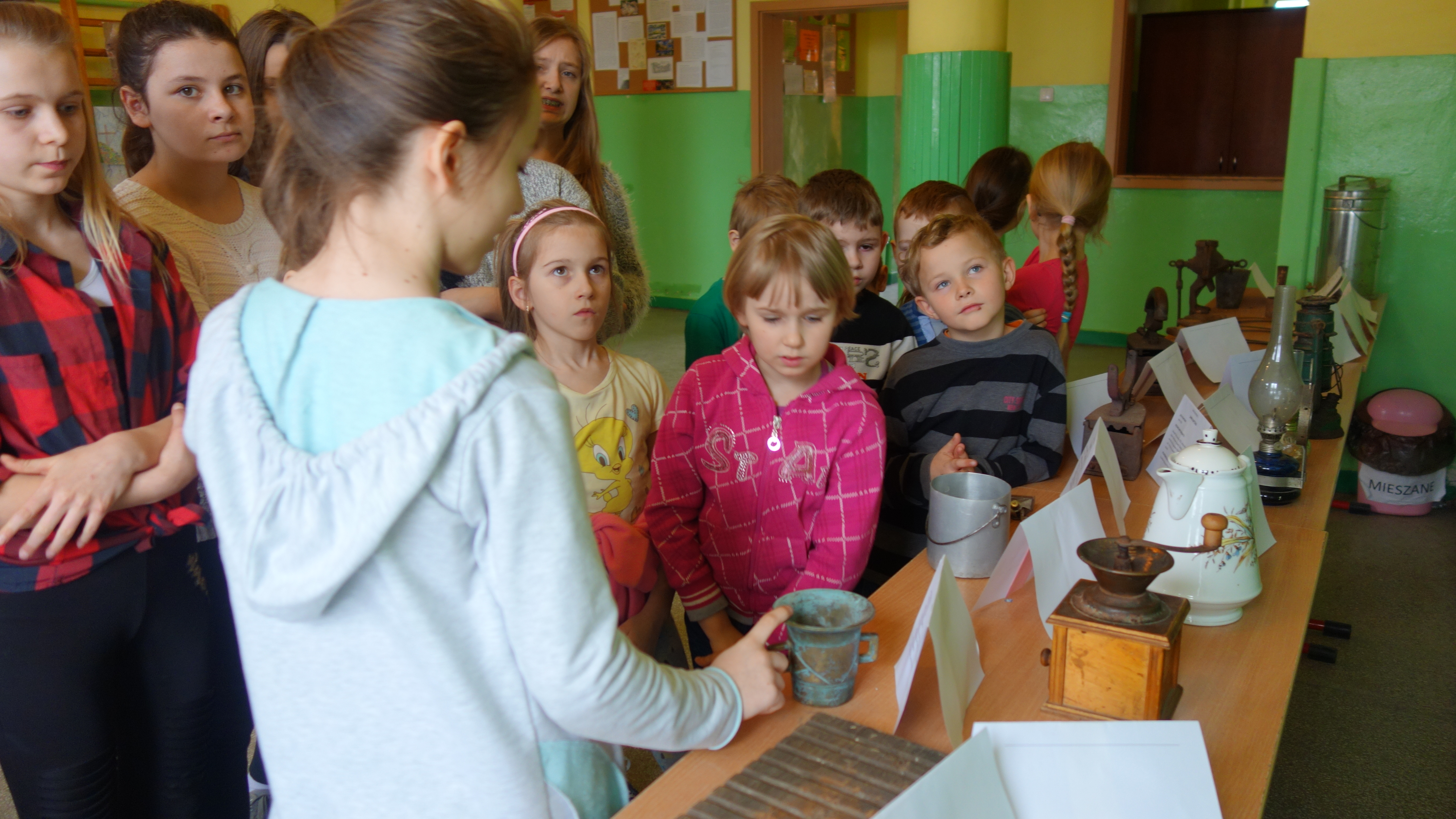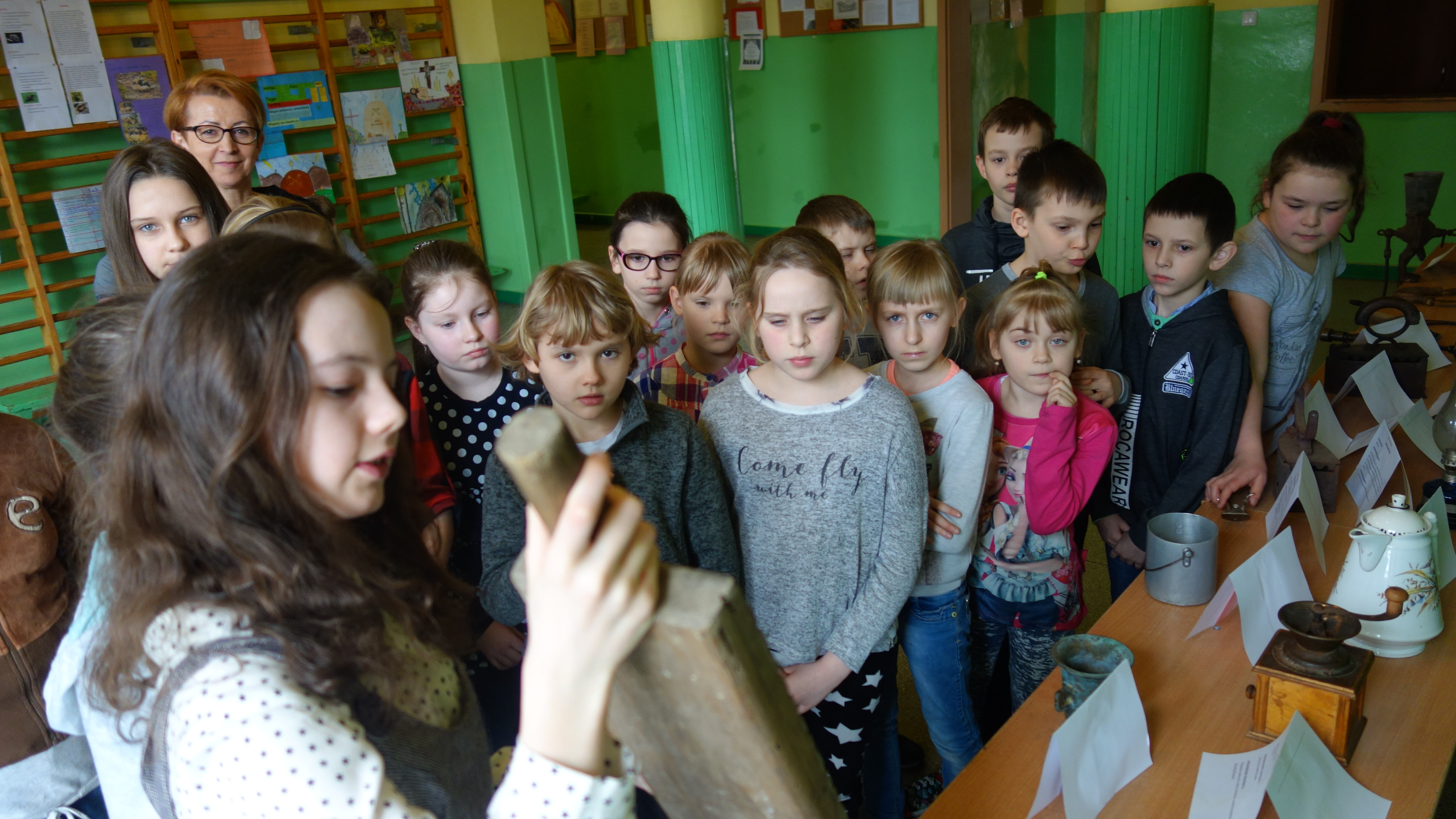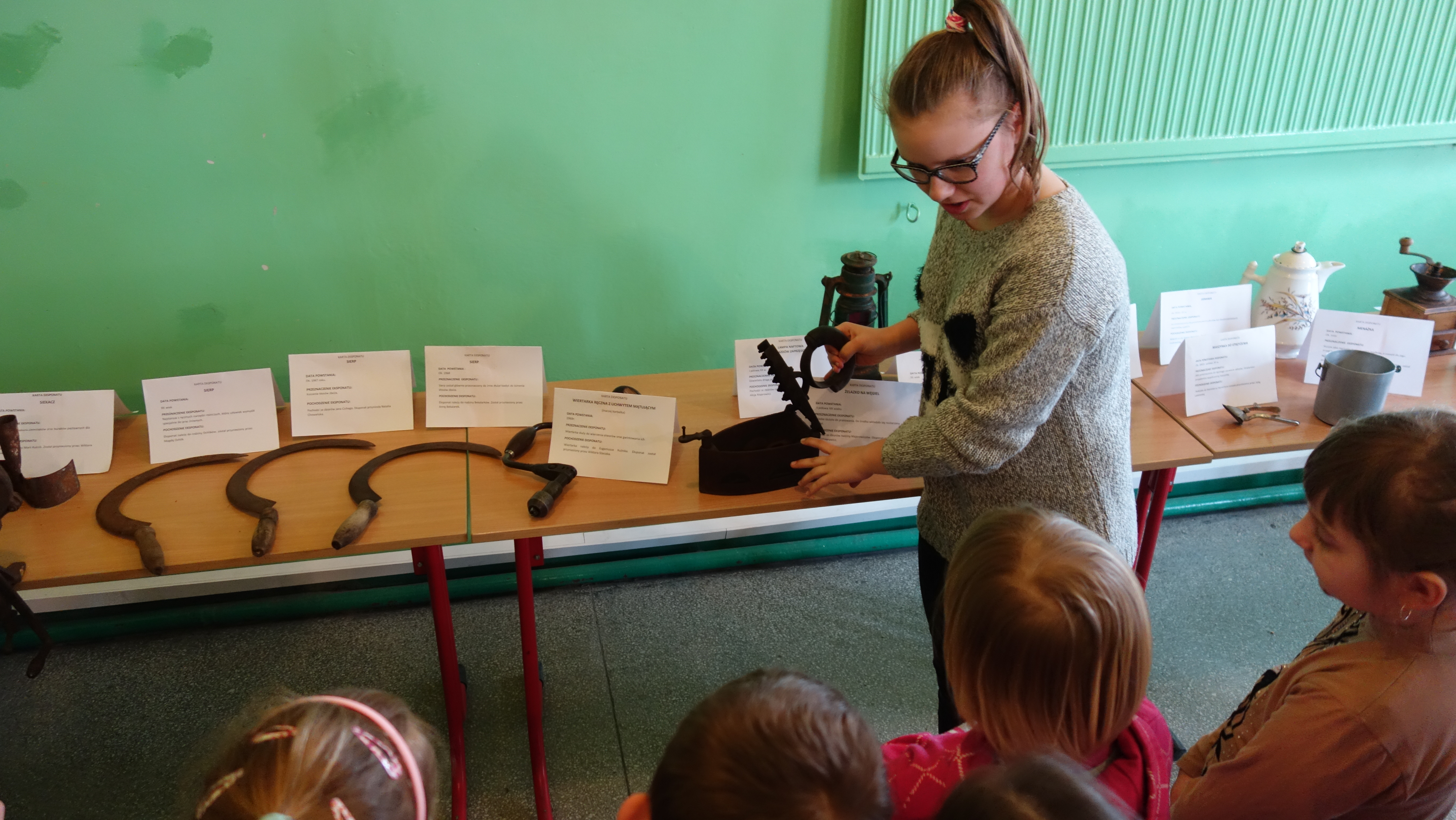 Wynalazki ostatniego pięćdziesięciolecia diametralnie zmieniły świat. Jak radzili sobie nasi przodkowie, skoro dopiero w latach 60. ubiegłego stulecia w Strzałkowie została podłączona linia elektryczna?! Uczniowie klasy szóstej- pasjonaci historii, którzy uczestniczą w dodatkowych zajęciach kółka historycznego, przygotowali pod kierunkiem nauczycielki historii, Wystawę Zabytkowych Przedmiotów Codziennego Użytku poświęconą przedmiotom, które należały niegdyś do naszych przodków i były przez nich wykorzystywane w codziennym życiu. Większość eksponatów pochodziła z XX w., ale znalazły się też perełki z XIX w. Oczywiście, nasi przodkowie mieli swoje sposoby na ułatwienie sobie jakże ciężkiego chłopskiego żywota. Wodę nosili ze studni przyczepiając wiadra do tzw. siądów, domy i powozy konne oświetlali lampami naftowymi, podczas żniw używali kos i sierpów. Gospodynie prały w naturalnych zbiornikach wodnych lub baliach przy użyciu tary, prasowały żelazkiem z rozgrzaną w środku sztabą (potocznie nazywaną duszą), a na stół podczas większych uroczystości nakładły haftowane serwety. To tylko część użytkowanych przez naszych dziadków i pradziadków przedmiotów ubiegłych epok. Można je było podziwiać właśnie na tej wystawie. Zwiedzający mogli też poczuć klimat czasów, w których o komputerze nie było mowy, a jedną z rozrywek były opowieści starszych ludzi. Stare pamiątki uzmysłowiły nam jak bardzo nasi przodkowie szanowali naturę i jej dary .