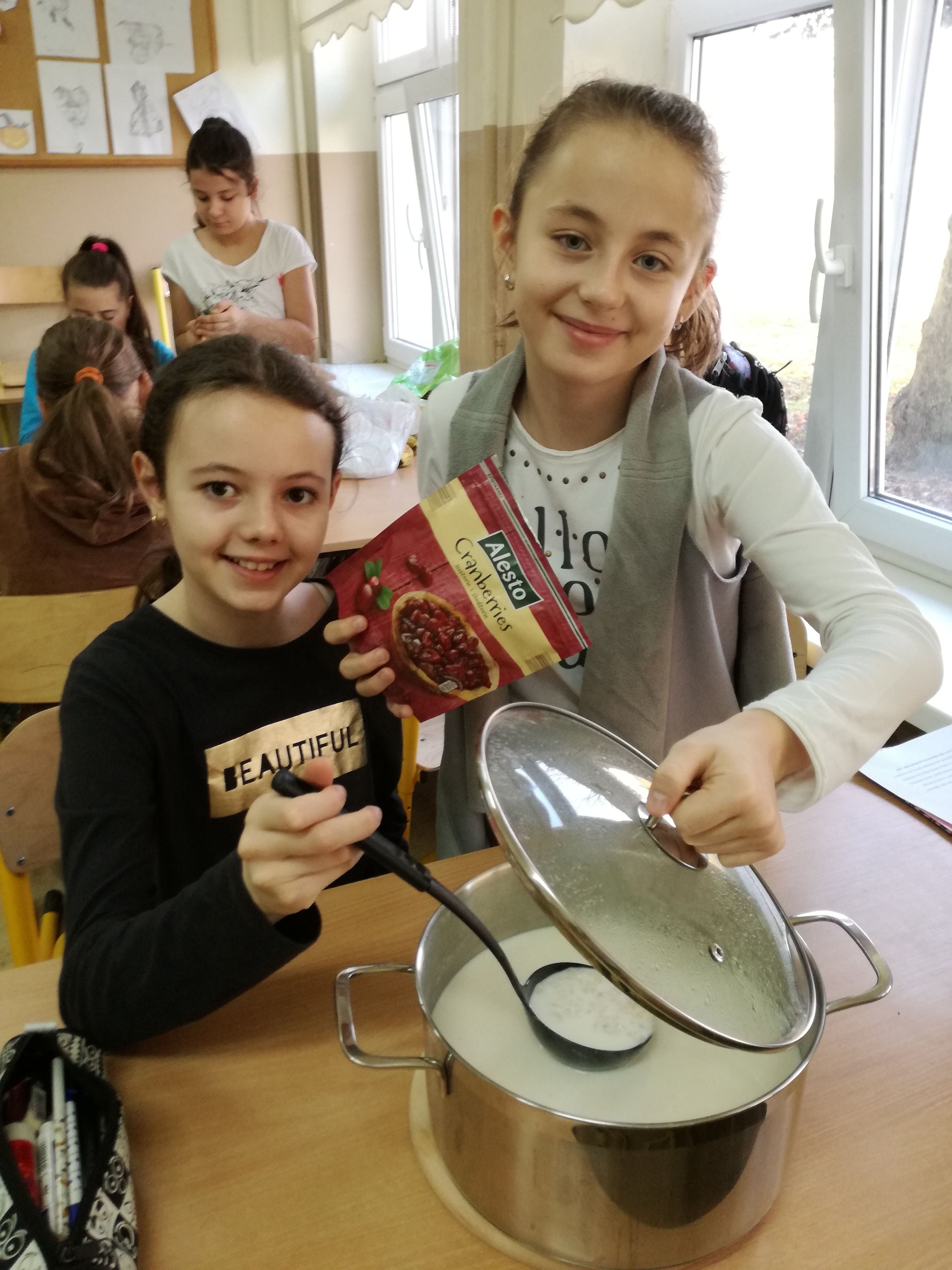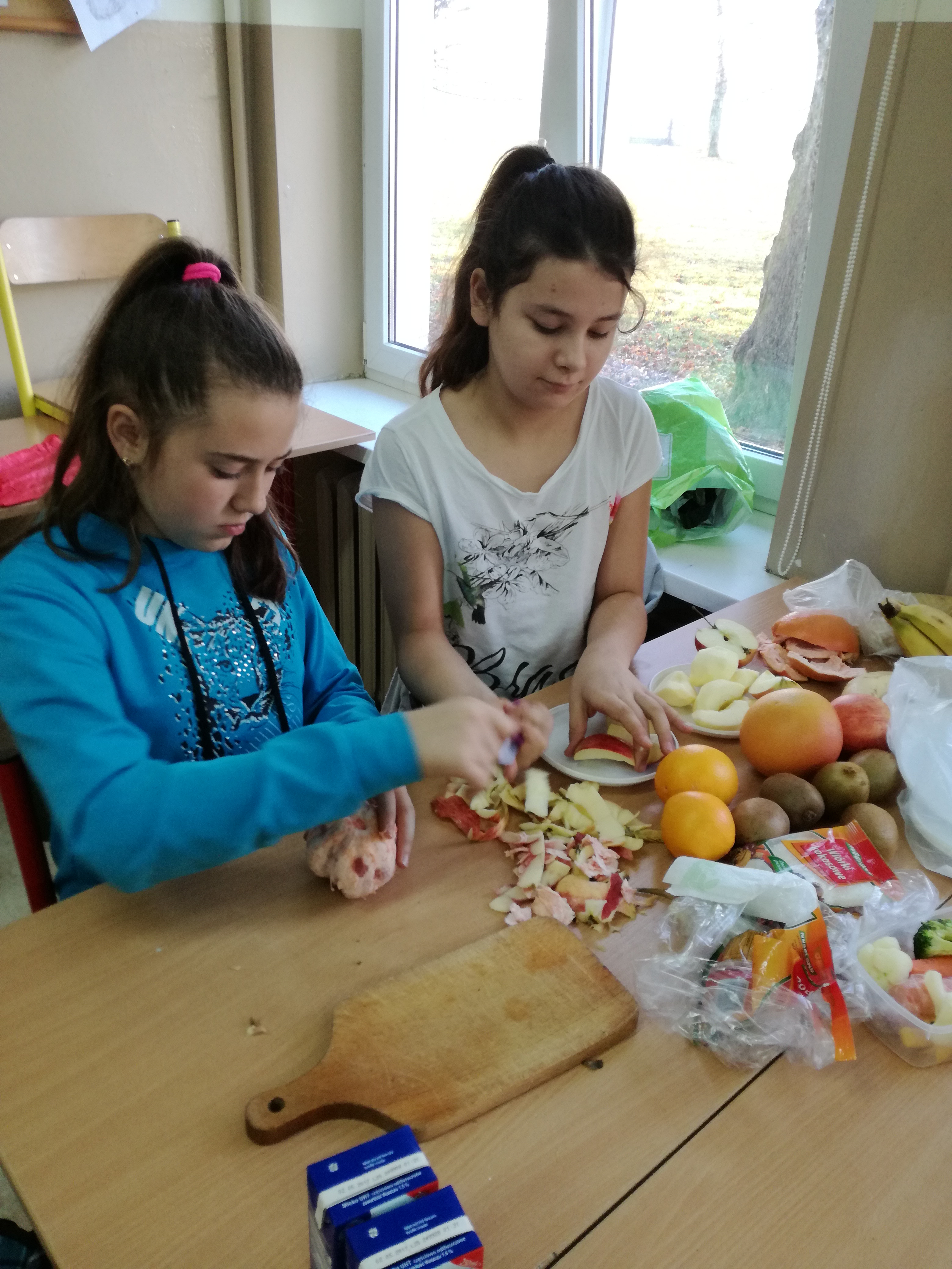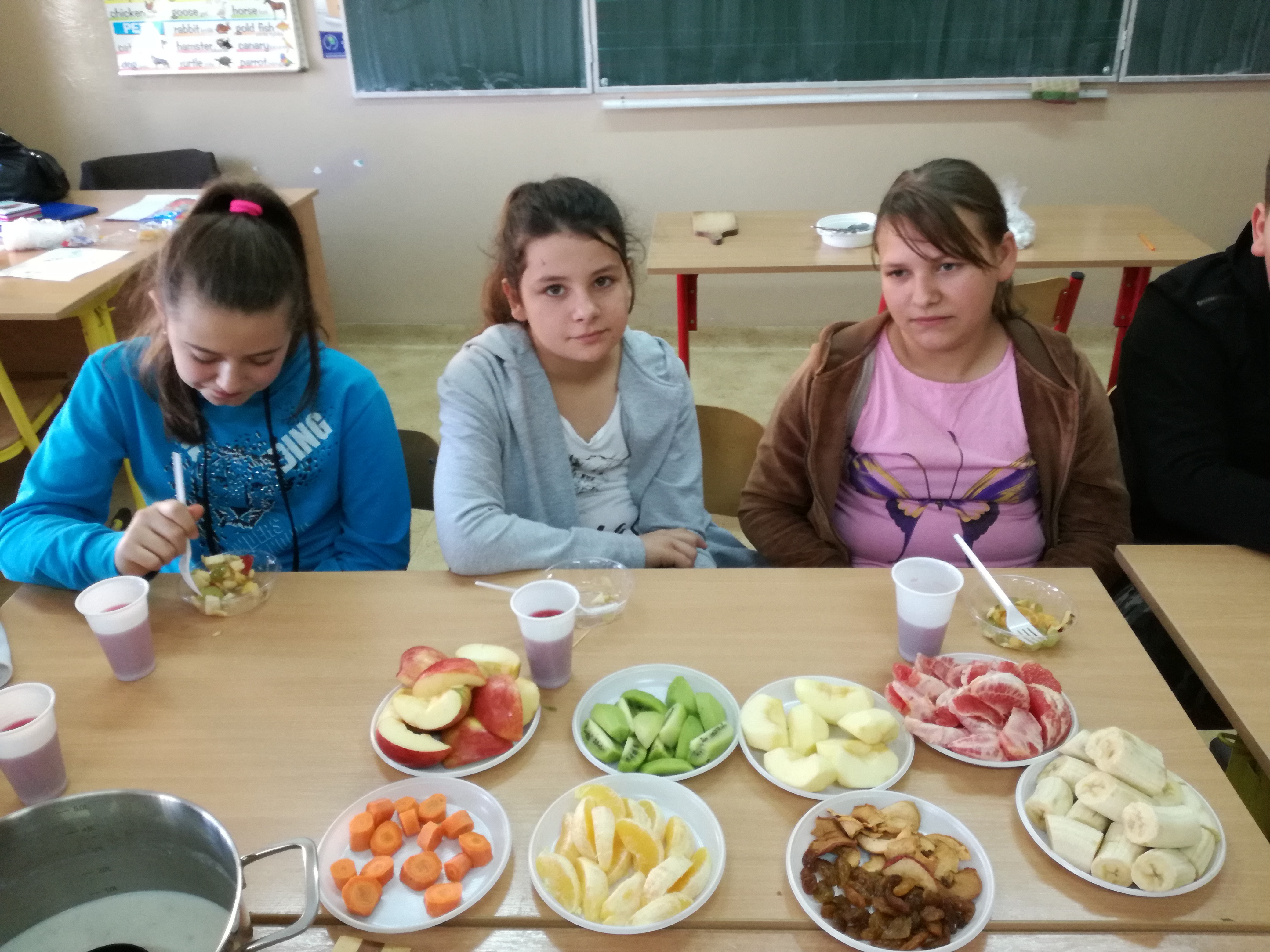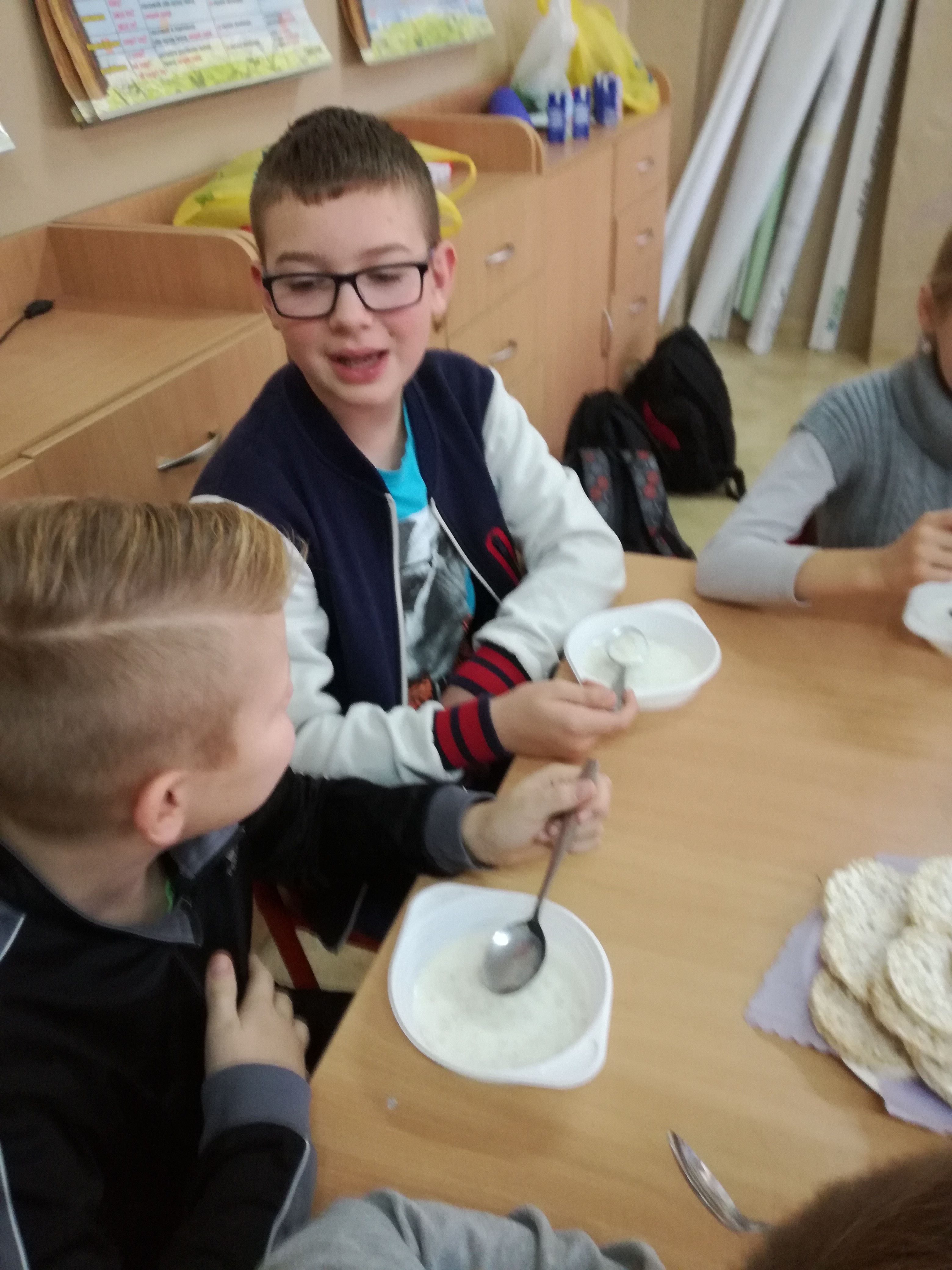 Uczniowie klasy VI na lekcji wychowawczej przygotowali zdrowe śniadanie i zdrowe przekąski dla swoich koleżanek i kolegów. Zanim doszło do degustacji najpierw uczniowie przygotowali się do działania poprzez studiowanie odpowiednich poradników, stron www itp. zawierających informacje o zdrowym posiłku, z czego powinien się składać, co zawierać. Następnie z przyniesionych składników na zajęciach przygotowali samodzielnie kanapki, sałatkę, przekąski i owsiankę. Degustację poprzedziła krótka prelekcja na temat przygotowanego dania. Niektórzy po raz pierwszy jedli owsiankę, a to taki zdrowy posiłek zawierający dużo błonnika, białka, witamin i minerałów oraz cenne kwasy tłuszczowe.