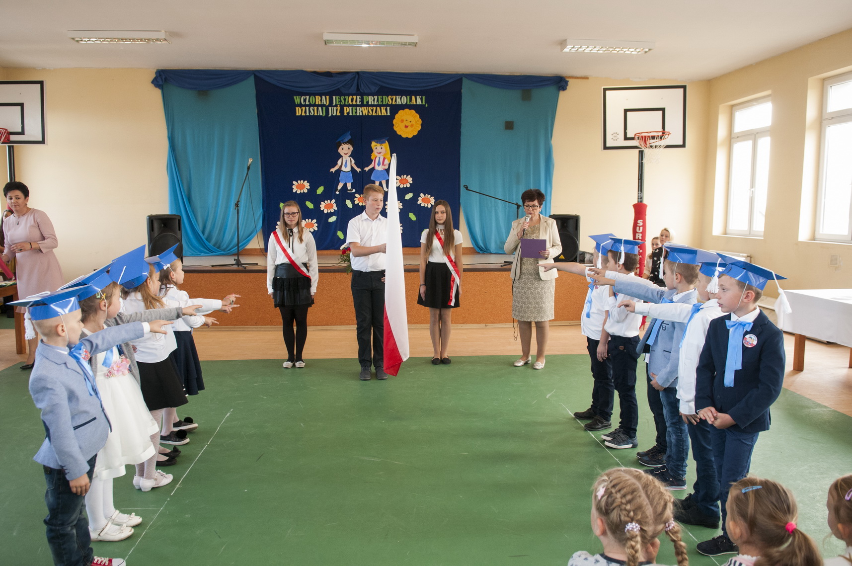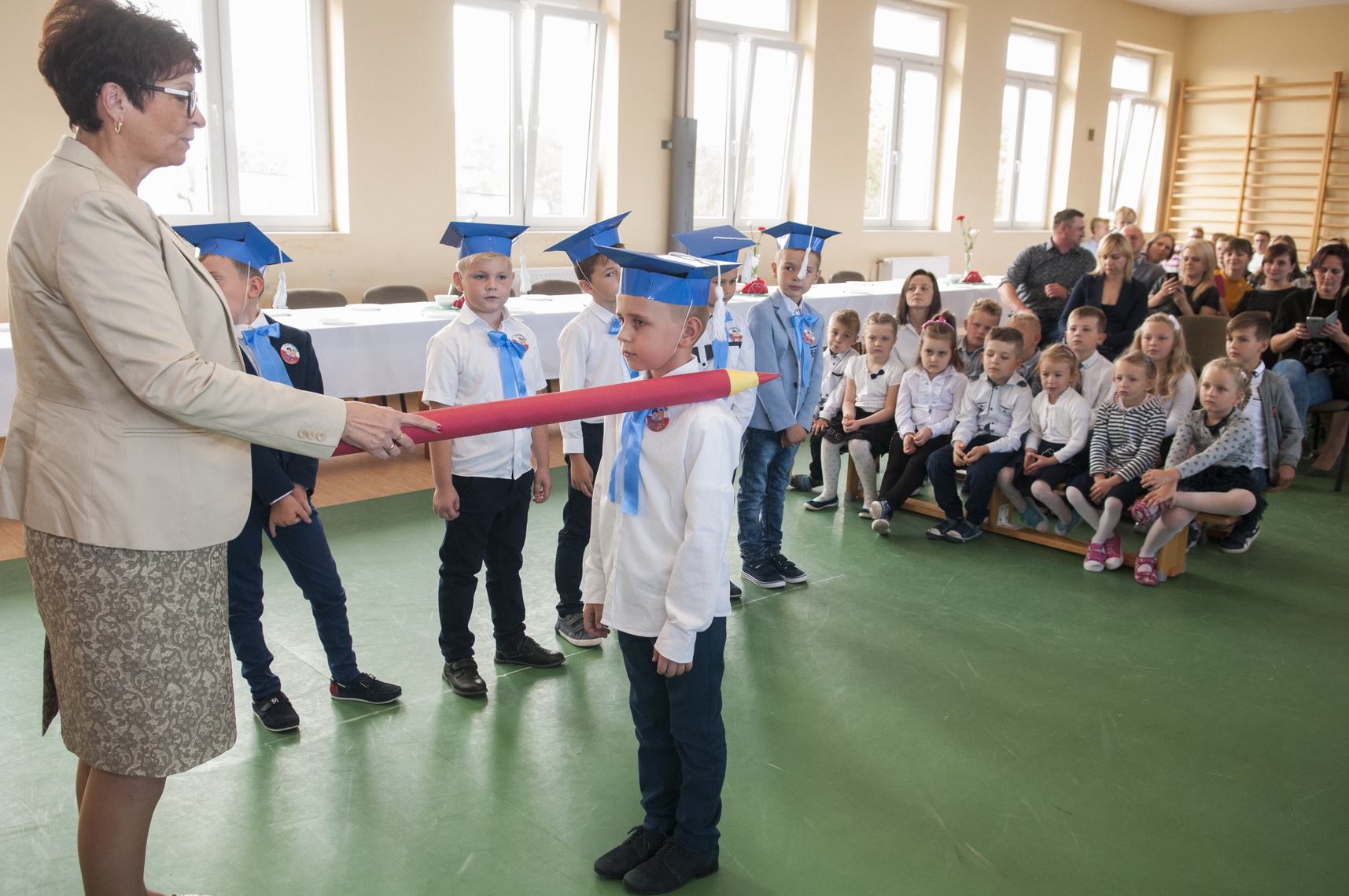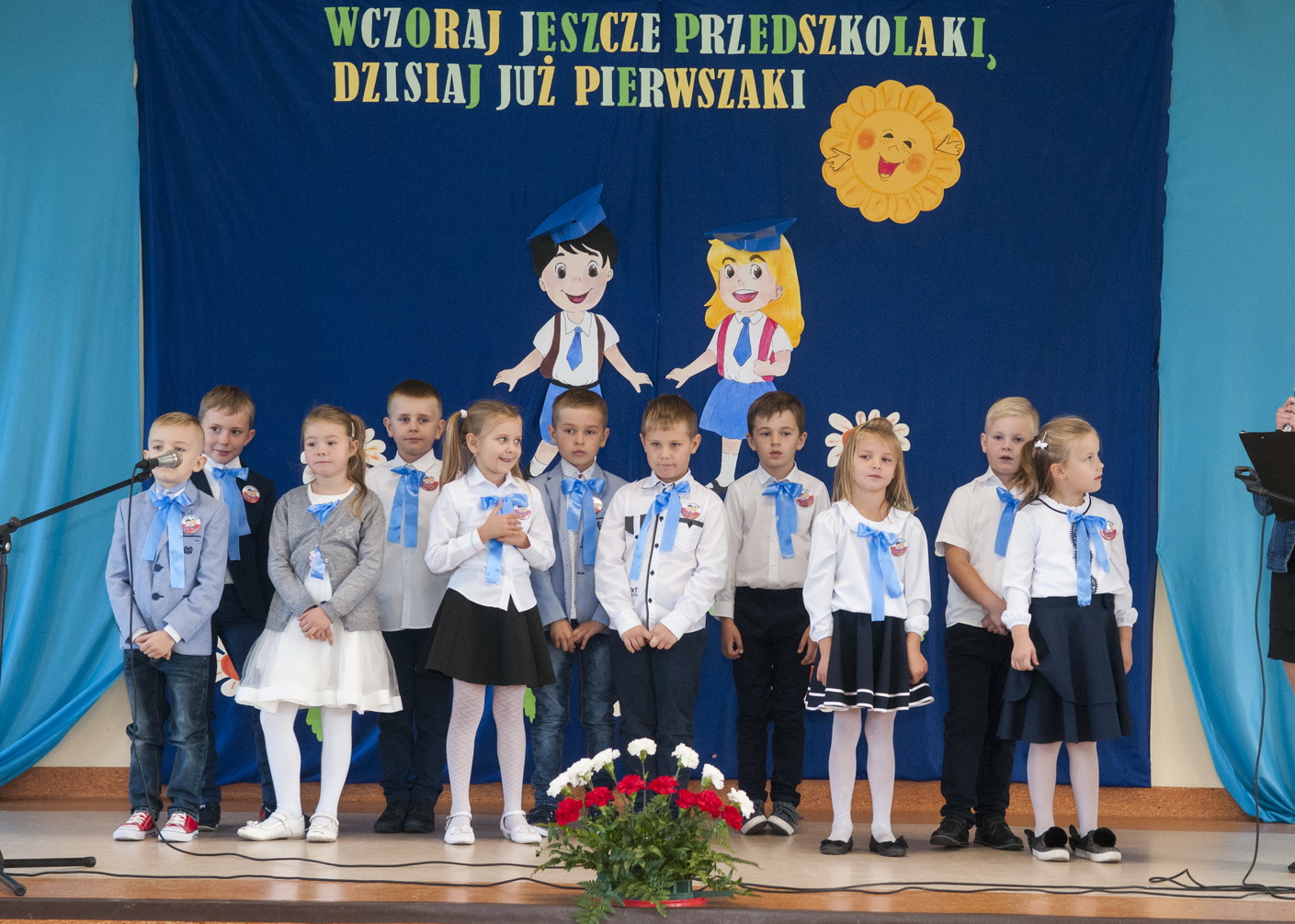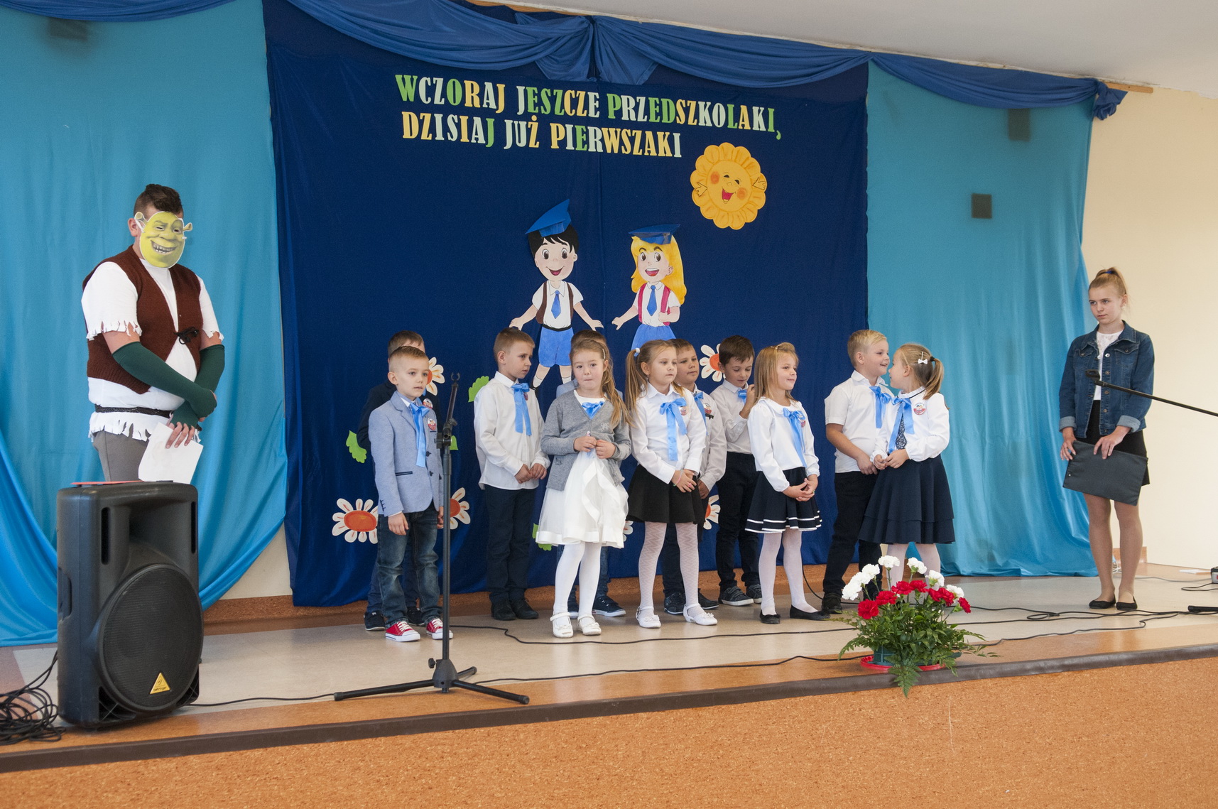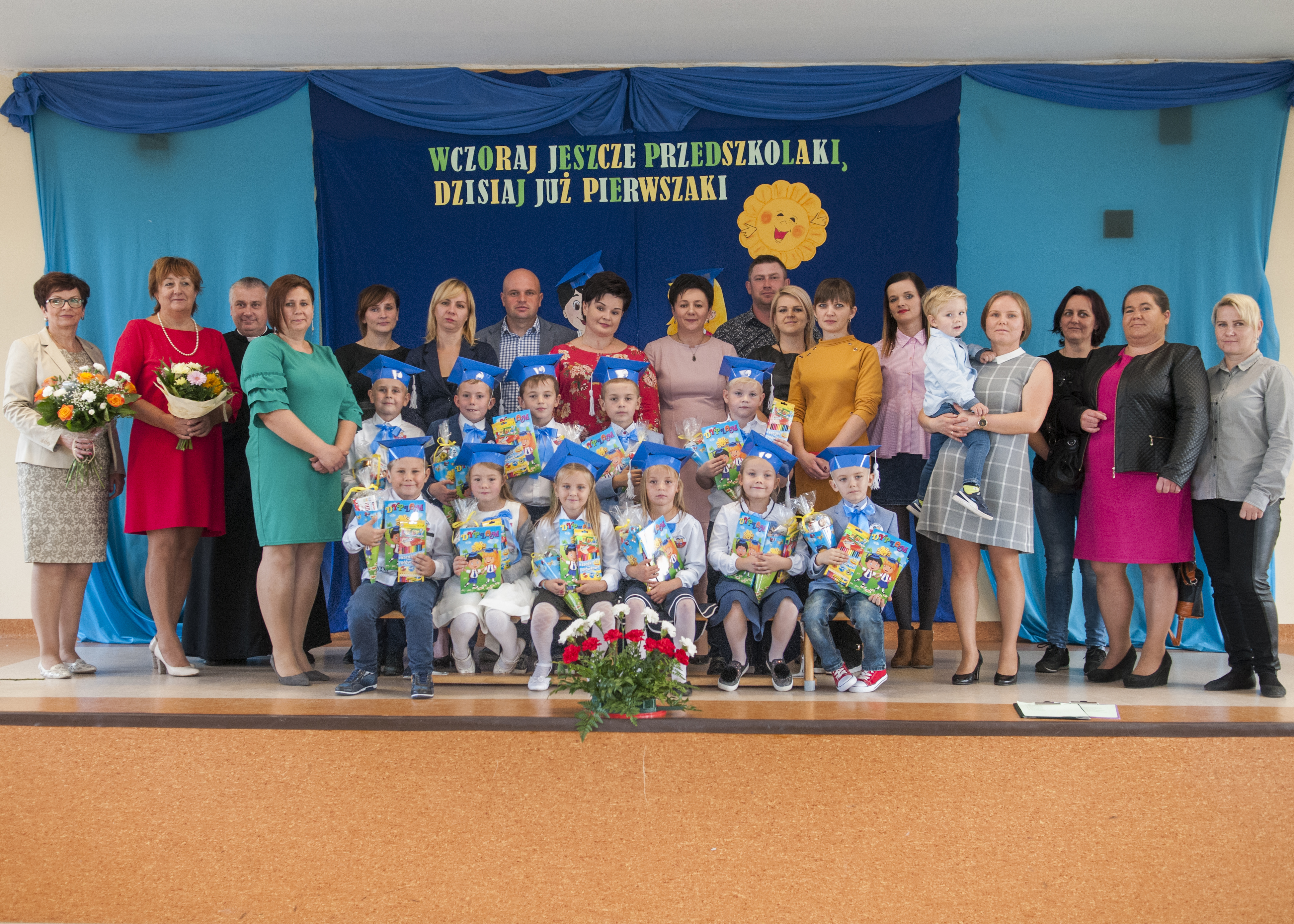 W dniu 11 października 2018 roku w Wiejskim Centrum Kulturalno-Sportowym odbyło się Ślubowanie pierwszoklasistów Szkoły Podstawowej w Strzałkowie. W tym uroczystym spotkaniu uczestniczyli Wójt Gminy Lisków Pani Maria Krawiec, dyrektor szkoły Pani Maria Ciemcia, ksiądz Robert Piechocki, rodzice, nauczyciele oraz uczniowie i uczennice naszej szkoły. Pierwszaki w odświętnych strojach, z dziarską minką, dobrym humorem i w zabawny sposób przedstawiły część artystyczną, w której musiały odczarować zaklęcie Złej Wróżki, poprzez wybranie się w podróż do pięciu krain : Krainy Śpiewu, Krainy Pracy, Krainy Miłości, Krainy Mądrości i Krainy Tańca , a także zdobyć pięć atrybutów : klucz wiolinowy, pszczółkę, serce, sowę oraz pozytywkę. W czasie tej podróży towarzyszyły dzieciom znane im postacie ze świata baśni i bajek: Dobra i Zła Wróżka, Księżniczka, Pocahontas, Shrek, Kot w butach oraz Czerwony Kapturek. Mali bohaterowie dnia dzielnie poradzili sobie ze wszystkimi zadaniami i w ten sposób Księżniczka mogła już z nich zdjąć zaklęcie Złej Wróżki. W tym momencie można było rozpocząć ceremonię ślubowania. Pani dyrektor dokonała uroczystego aktu ślubowania i pasowania na ucznia naszej szkoły. Przysięgę złożyli następujący uczniowie i uczennice: Alan Gajdziński, Filip Jarosik, Lena Jędrusiak, Natalia Kolekta, Filip Lament, Antoni Miklas, Jakub Przybyła, Kinga Przybyła, Wiktoria Suchojad, Błażej Szparaga, Damian Szprync. Wychowawczyni klasy pani Anna Mąkowska, wręczyła swoim uczniom pamiątkowe dyplomy, życzyła im mnóstwo sukcesów w nauce oraz by dzieci z radością i pasją przyswajały nową wiedzę, a szkoła stała się dla nich miejscem, gdzie będą miło, kreatywnie i przyjemnie spędzały czas. Pani Wójt Maria Krawiec pogratulowała pierwszakom w dniu ich święta oraz przekazała im piękne upominki. Rodzice przygotowali i podarowali swoim pociechom niespodziankę - rożki obfitości, a następnie zaprosili wszystkich zebranych na słodki poczęstunek.