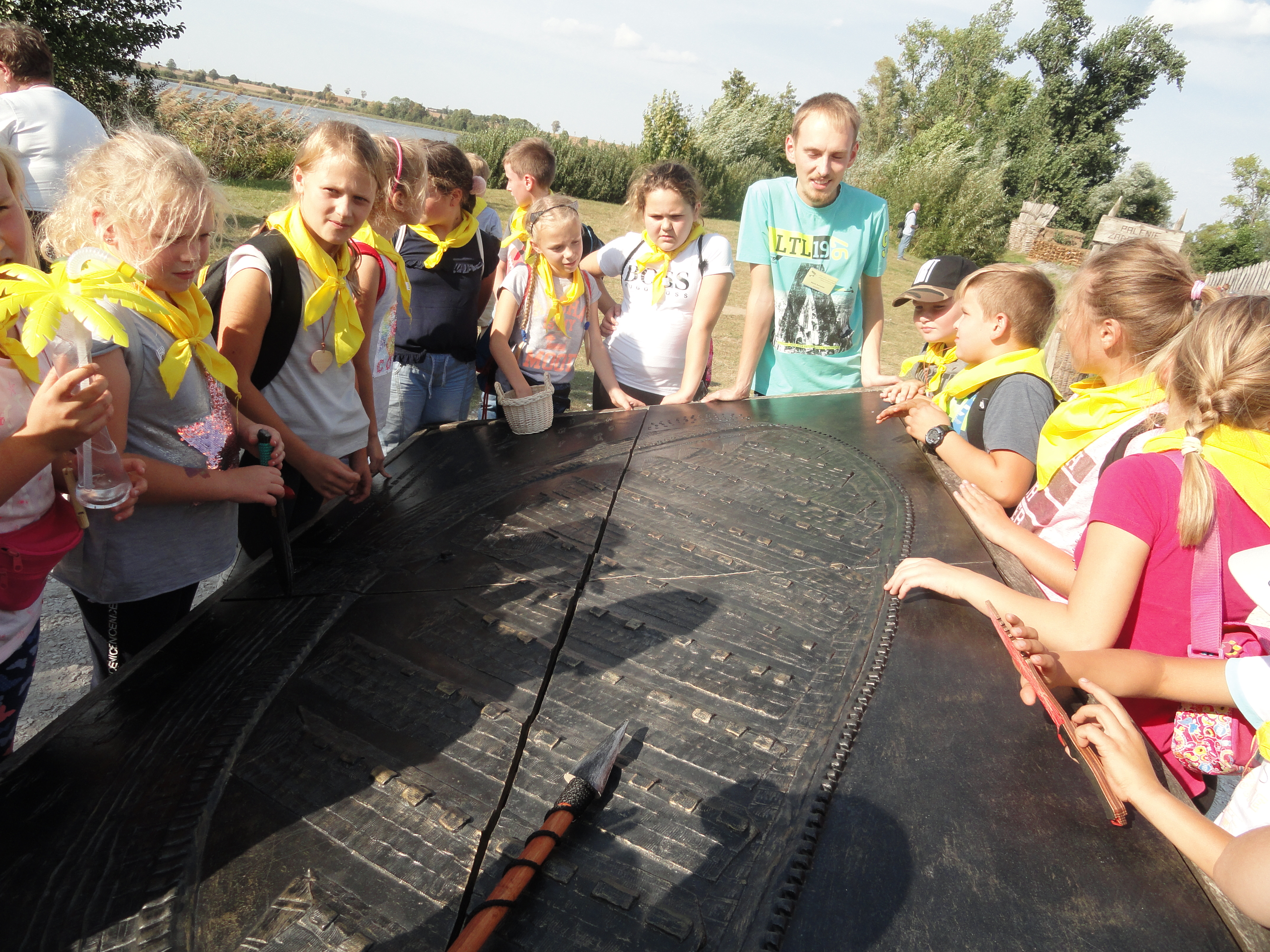 Punktem kulminacyjnym, a zarazem główną atrakcją był pobyt w Muzeum Archeologicznym w Biskupinie, gdzie odbywał się XXIV festyn archeologiczny pod tytułem „Archeomarket. Od wymiany po stragany”. Biskupin to pozostałości po osadzie łużyckiej sprzed 2700 lat. Podczas zwiedzania obejrzeliśmy obozowisko łowców i zbieraczy z epoki kamienia oraz wioskę wczesnopiastowską. Podczas zwiedzania osiedla obronnego ludności łużyckiej w zrekonstruowanych chatach czekali rzemieślnicy prezentujący swoje wyroby m.in. broń, szaty i narzędzia.